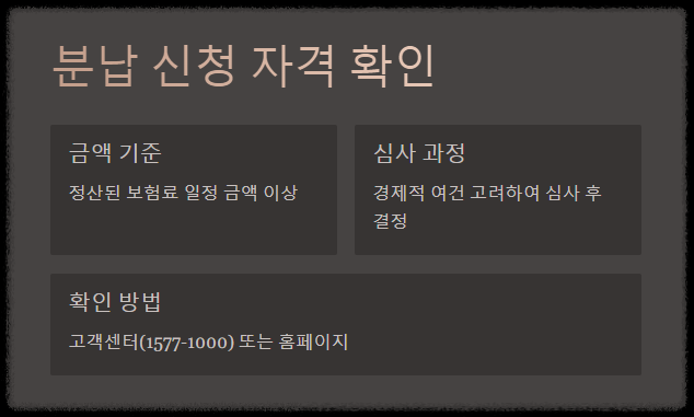 - 사전 문의 권장: 분납 기준은 매년 달라질 수 있으므로 신청 전 공단 고객센터에 문의하면 확실하다.