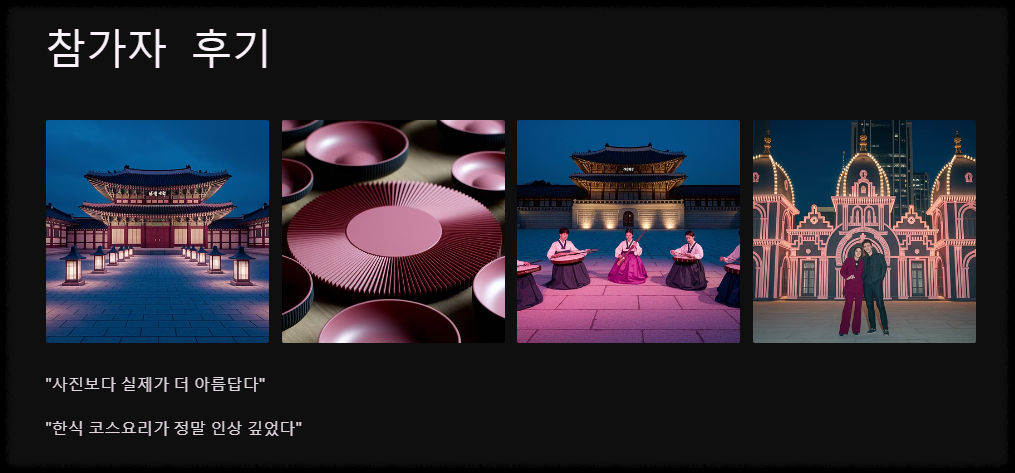매년 참가 후기를 보면 “사진보다 실제가 더 아름답다”, “한식 코스요리가 정말 인상 깊었다”는 반응이 많습니다.