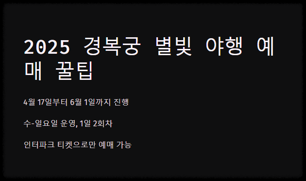 2025 경복궁 별빛 야행이 4월 2일부터 시작됩니다. 예매 방법, 티켓 가격, 일정까지 꿀팁으로 정리했어요.