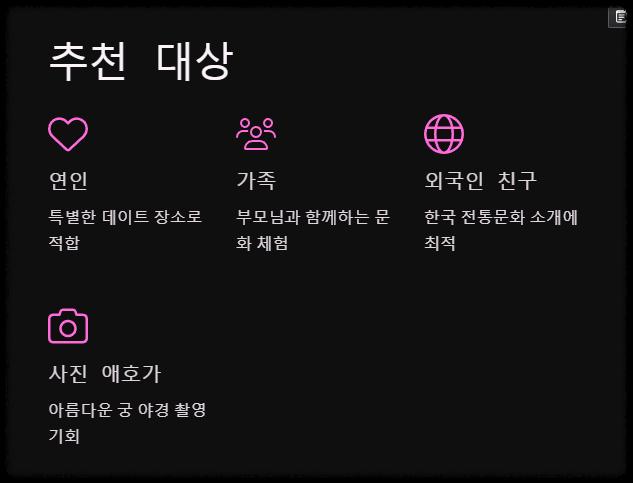 부모님과 함께 조용한 궁 투어를 원하시는 분