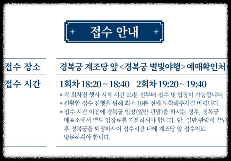 2025 경복궁 별빛 야행은 인터파크 티켓에서 온라인 예매만 가능합니다. 현장 판매는 없으니 반드시 사전 예매가 필요합니다.