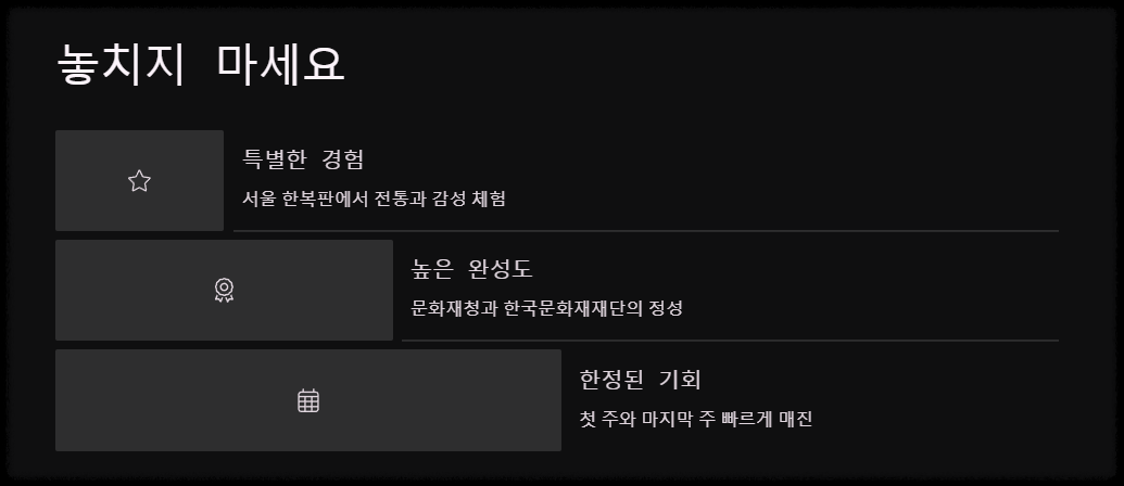 서울 한복판에서 전통과 감성을 동시에 느낄 수 있는 기회, 자주 오는 게 아닙니다. 올해도 예매 경쟁은 뜨거울 것으로 예상되며, 특히 첫 주와 마지막 주는 빠르게 마감될 가능성이 높아요.