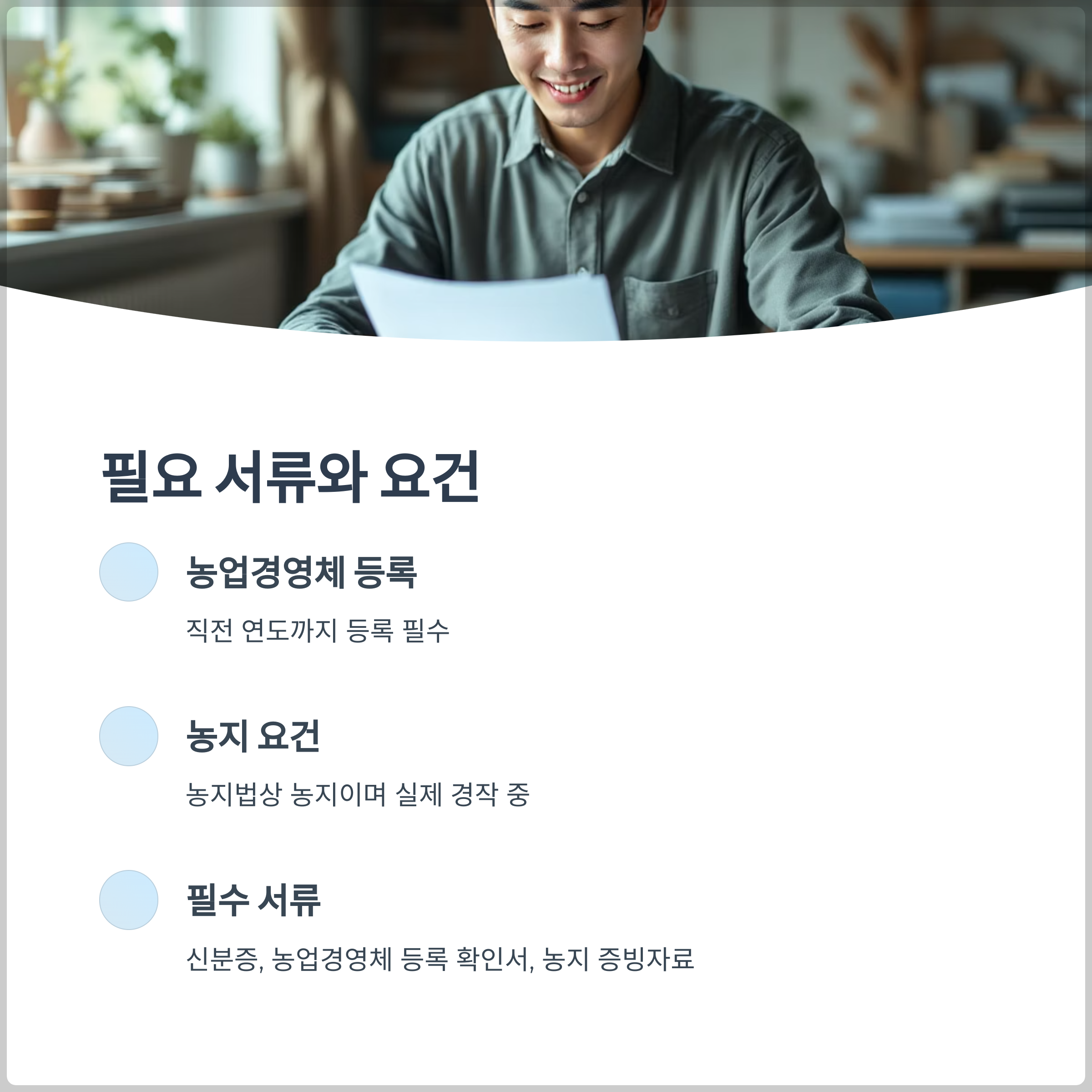 | 농지 요건 | 농지법상 농지이며, 실제로 경작하고 있어야 함 |