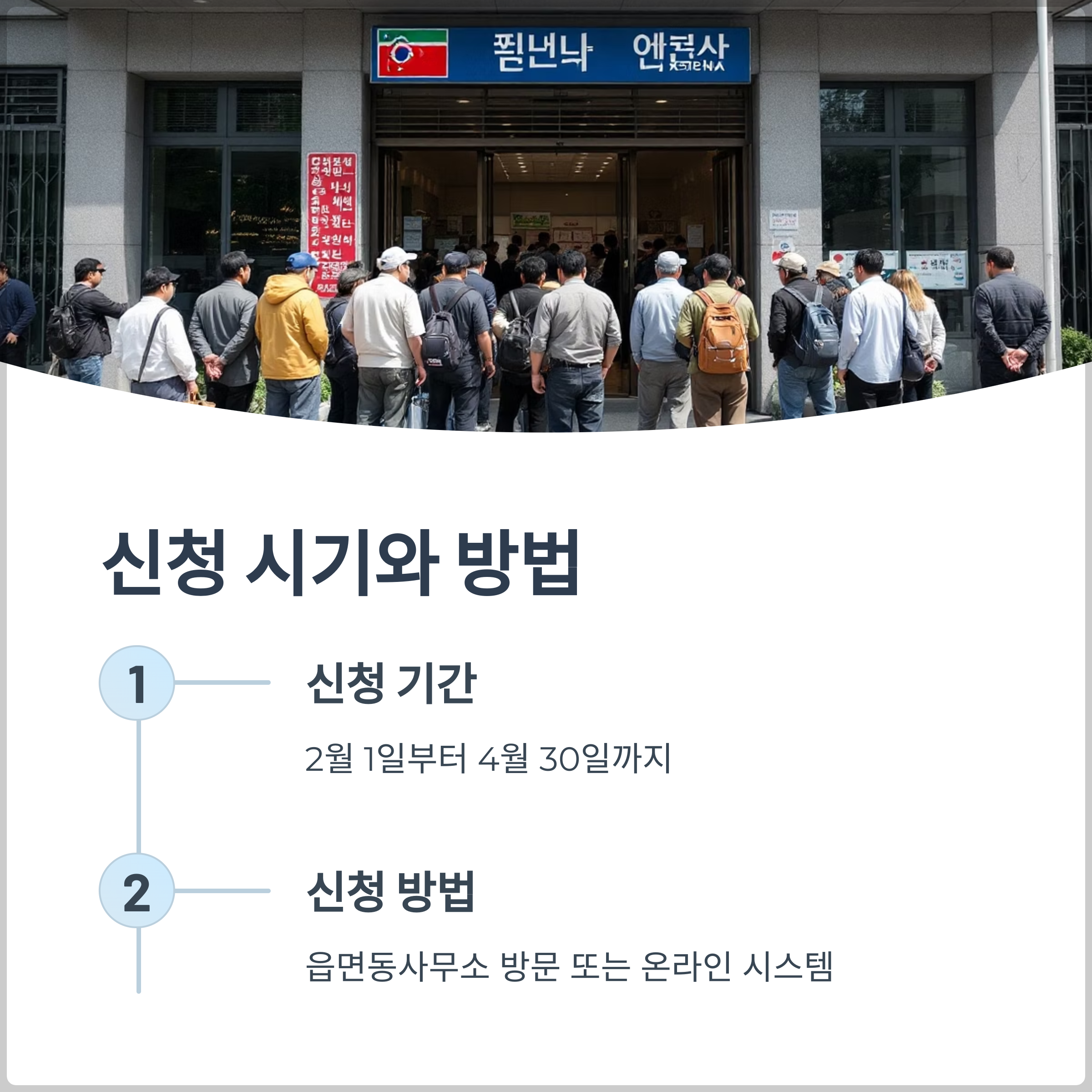 | 2월~4월 | 신청 접수 | 읍면동사무소 또는 온라인으로 신청 |