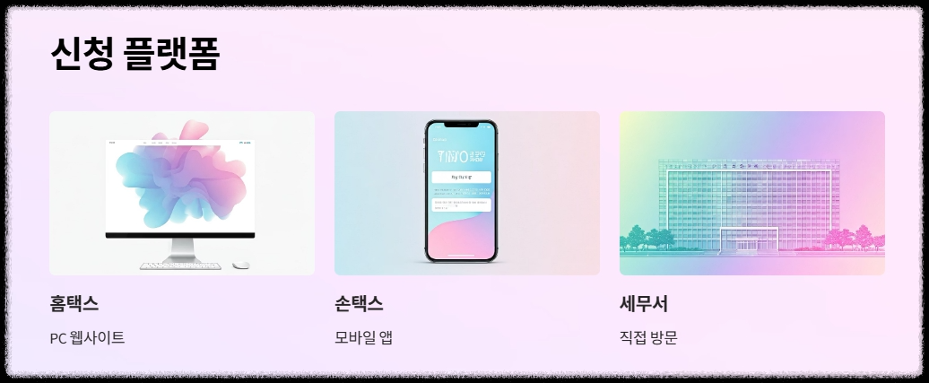 | 홈택스 또는 모바일 손택스 이용 가능 | 근로소득, 사업소득, 종교인소득 인정 | 자동차, 부동산, 예금 모두 포함 |