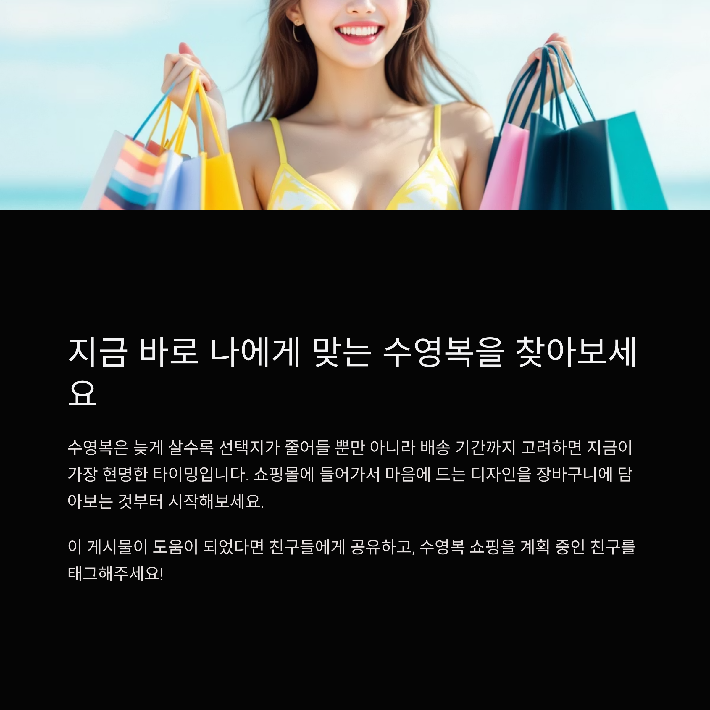 "지금 사면 늦지 않나요?" 라는 걱정은 접어두세요. 수영복은 늦게 살수록 선택지가 줄어들 뿐만 아니라 배송 기간까지 고려하면 지금이 가장 현명한 타이밍입니다. 쇼핑몰에 들어가서 마음에 드는 디자인을 장바구니에 담아보는 것부터 시작해보세요.