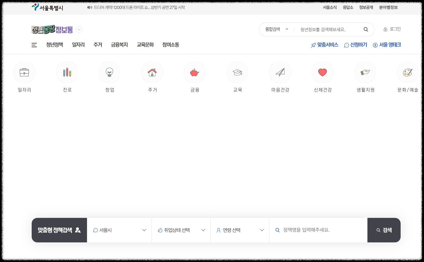 - 서울시와 중앙정부의 약 2,000개 청년정책 통합 제공