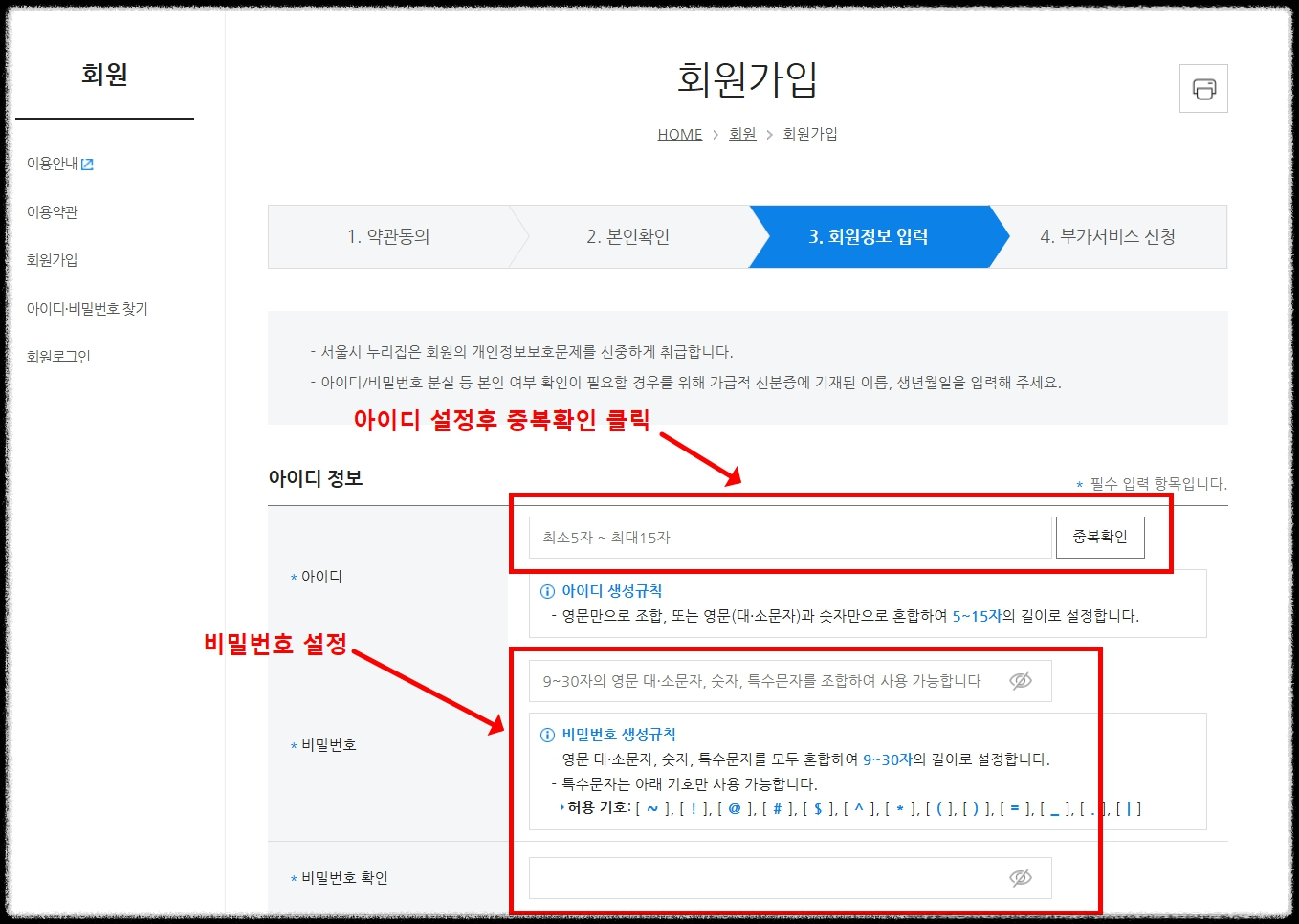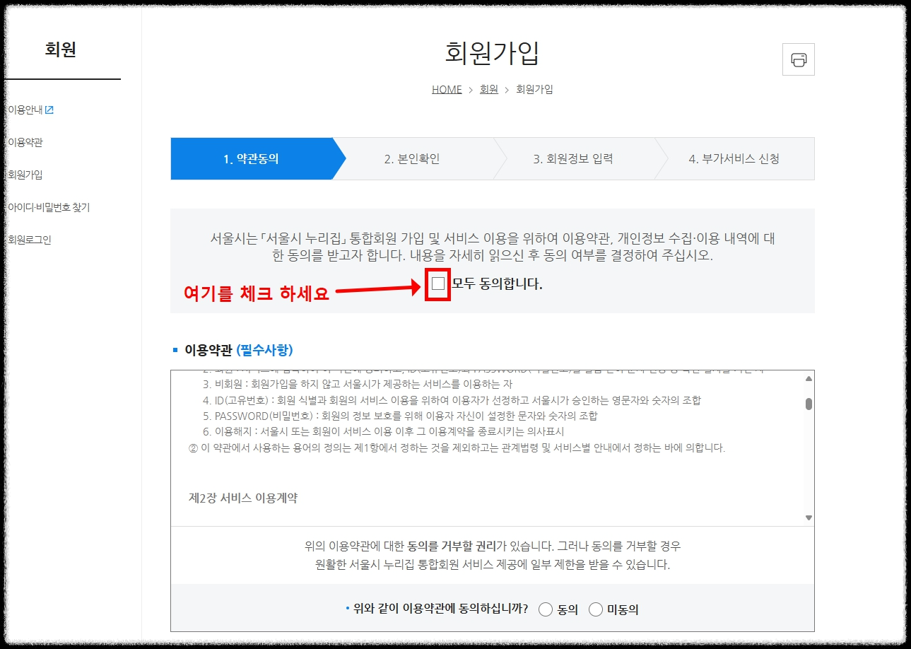 가입순서 : 청년몽땅정보통 접속하기 👉 메인화면 오른쪽 상단 회원가입 클릭 하여 본인인증후 회원가입