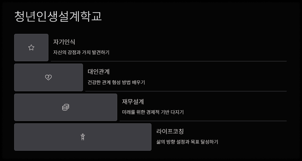 '청년인생설계학교'도 정말 추천하고 싶은 프로그램인데, 이건 단순한 기술 교육이 아니라 자신의 삶을 설계하고 방향을 찾는 데 도움을 주는 프로그램이거든요.