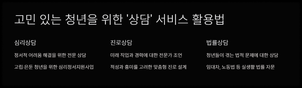 고민 있는 청년을 위한 '상담' 서비스 활용법