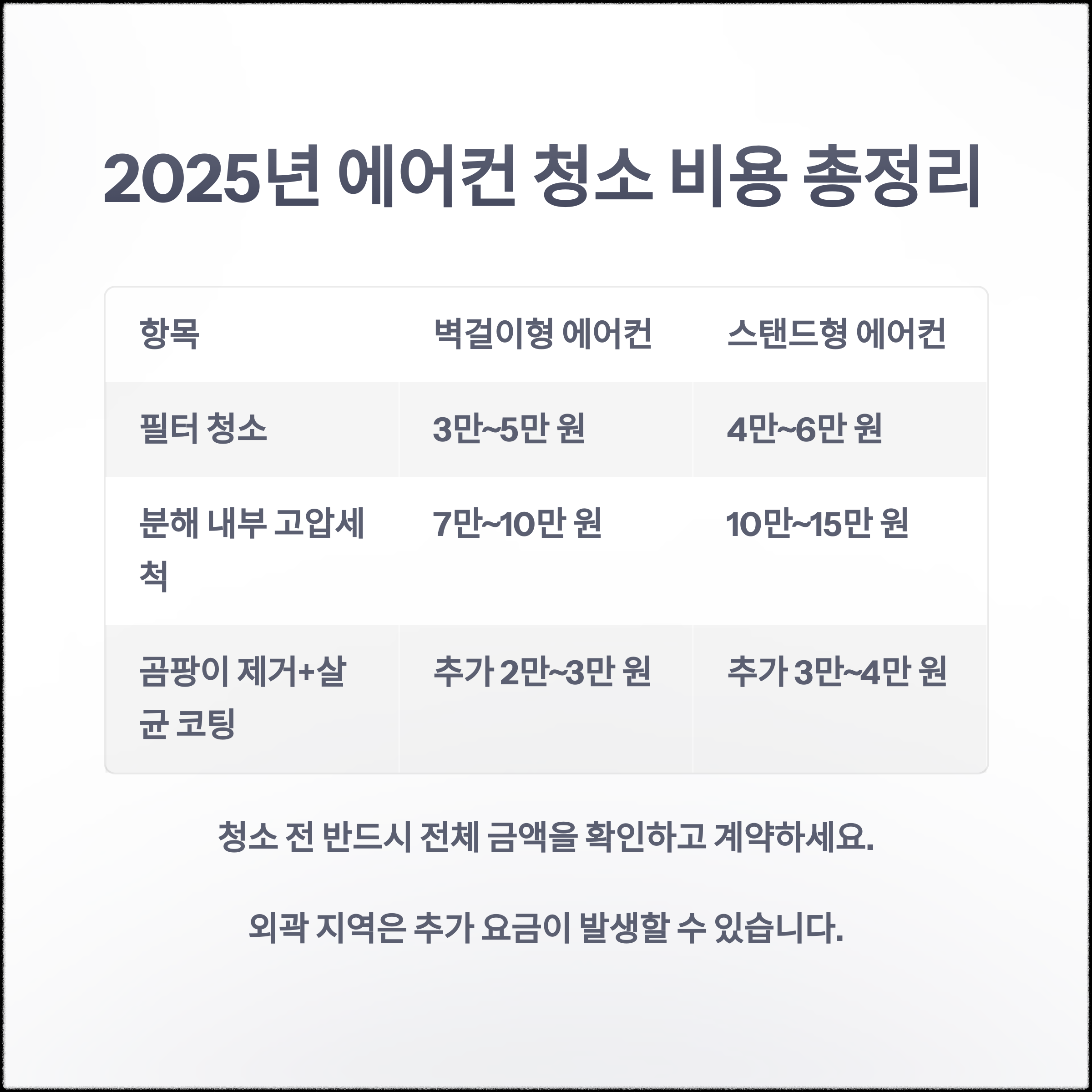 2025년 기준, 에어컨 청소 비용 총정리 (표 정리)