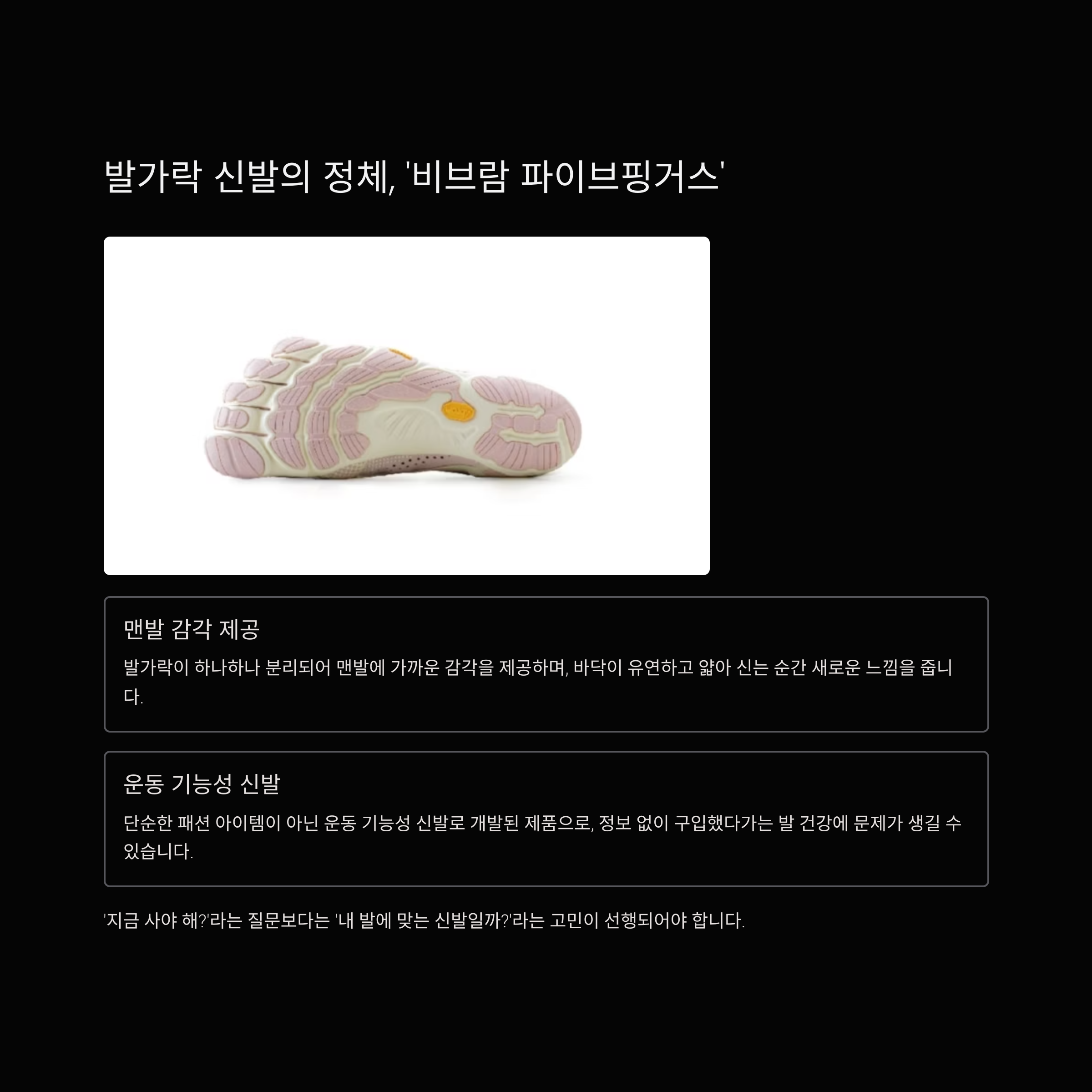 이효리의 발가락 신발이 멋져 보이는 건 사실입니다. 하지만 트렌드는 시간이 지나면 바뀔 수 있고, 건강은 한 번 상하면 회복이 어렵습니다. 구매 전에 반드시 아래 사항을 체크하세요.