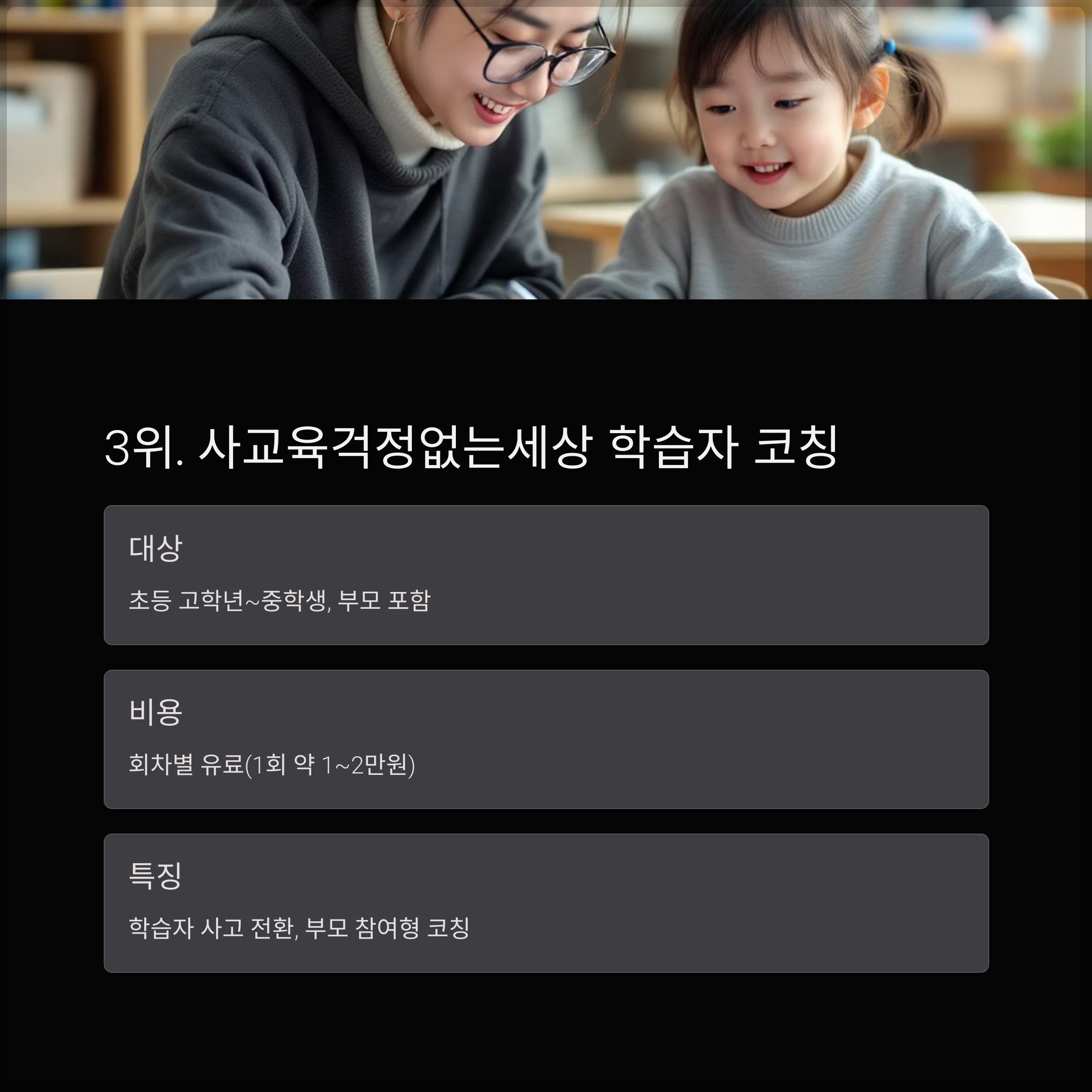 학습 습관을 제대로 잡지 못한 아이, 무조건 시키기보다 스스로 하게 만들고 싶은 마음, 모든 부모의 공통된 고민입니다. 특히 초등 고학년부터 중학생 자녀를 둔 가정이라면 "학원만 보내선 안 된다"는 걸 절실히 느끼고 계실 겁니다. 이 글에서는 자녀의 자기주도 학습 능력을 키우고 학습 동기를 심어주는 2025년 최신 학습 코칭 프로그램 중 실제 교육 전문가들이 추천하고, 부모들이 실제로 효과를 느낀 TOP3를 소개합니다. 스스로 공부하는 습관을 만드는 길, 지금부터 함께 시작해보세요.