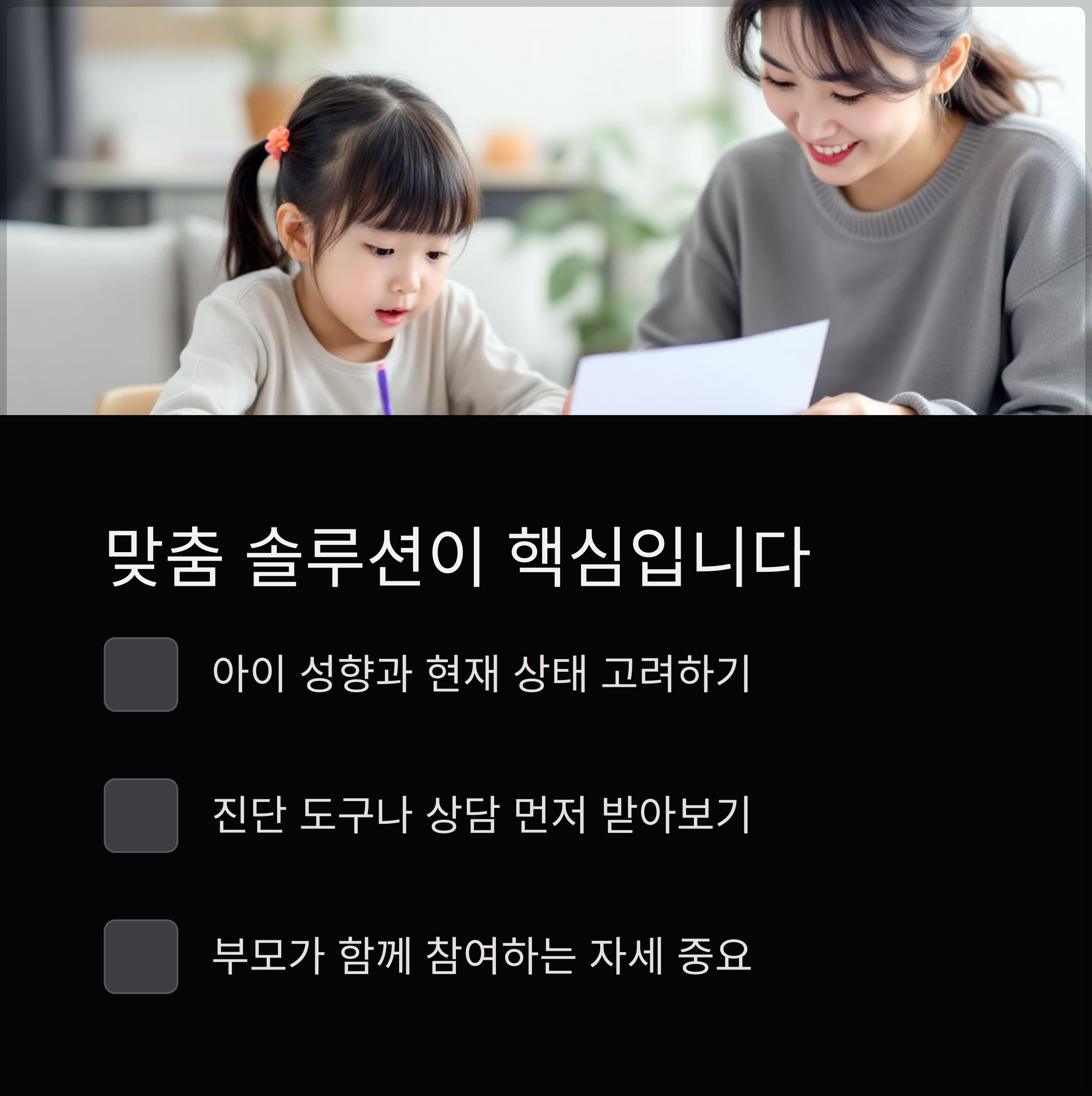예를 들어, 집중력이 낮은 아이에겐 단기 목표 설정과 중간 피드백 강화 루트를,