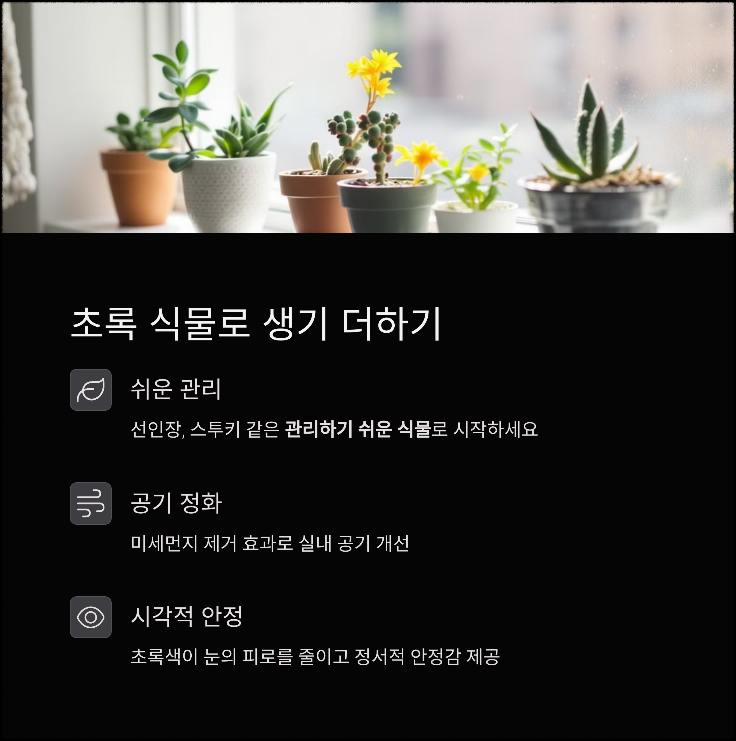 식물을 처음 키우는 사람도 부담 없이 시작할 수 있습니다.