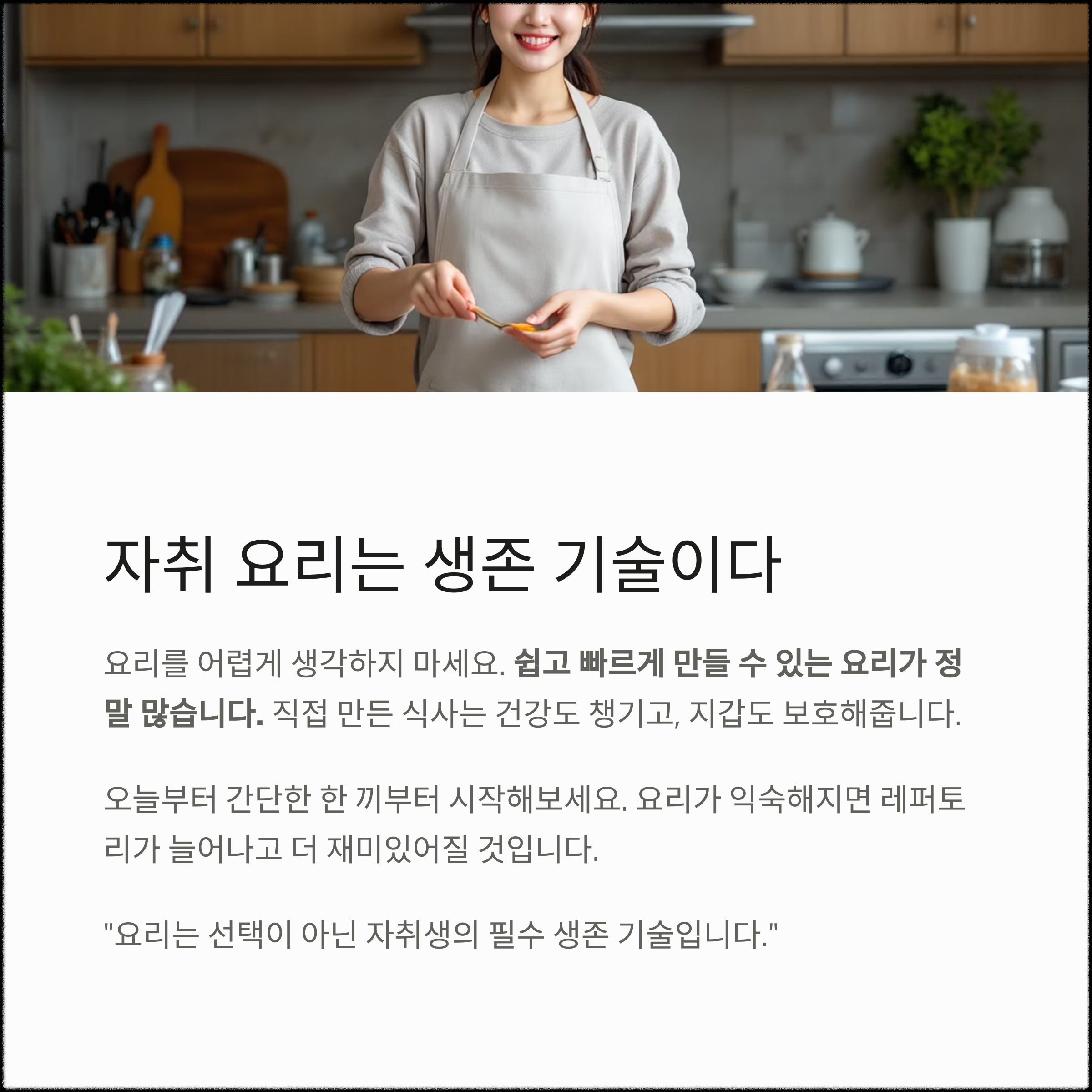 “요리는 선택이 아닌 자취생의 필수 생존 기술입니다.”