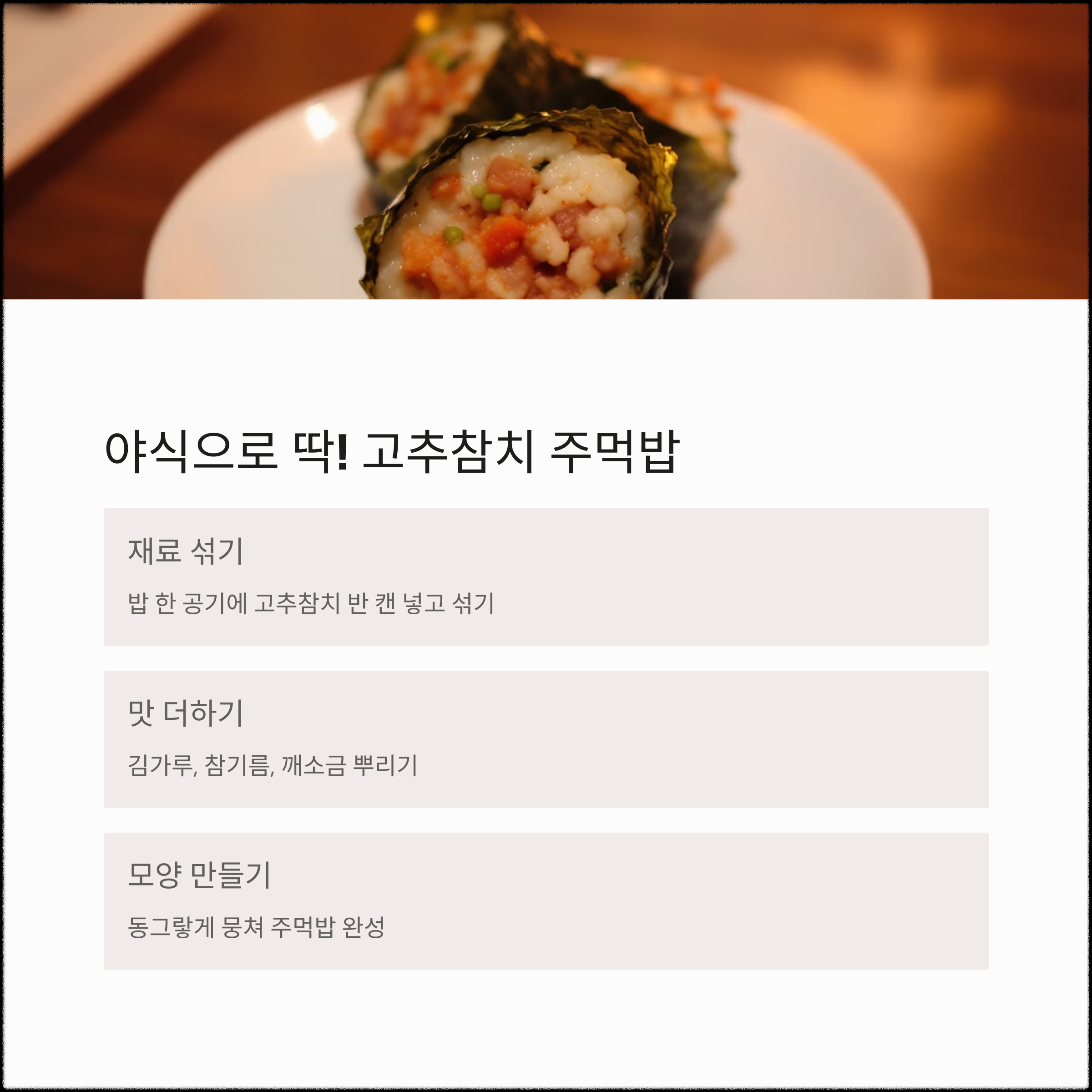 야식으로 딱! 고추참치 주먹밥