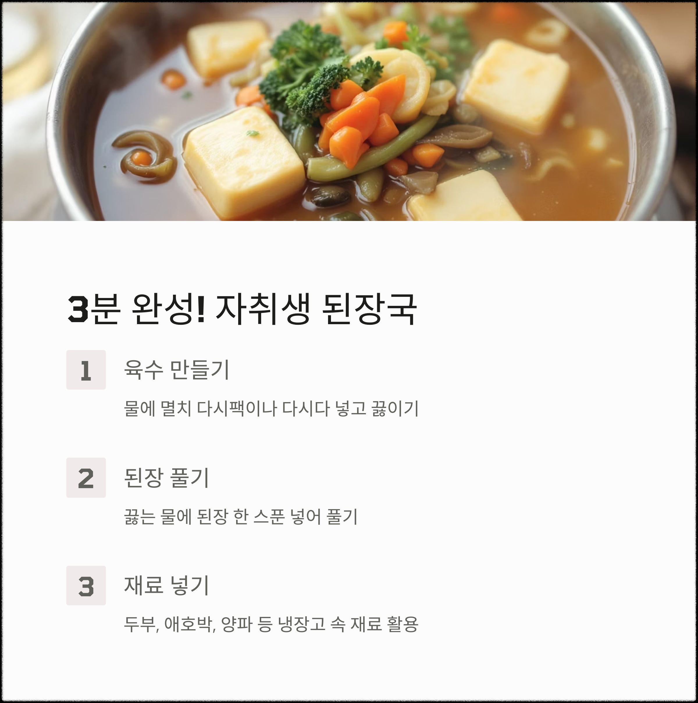 "건강 챙기면서도 정성은 최소로, 자취생 버전 된장국입니다."