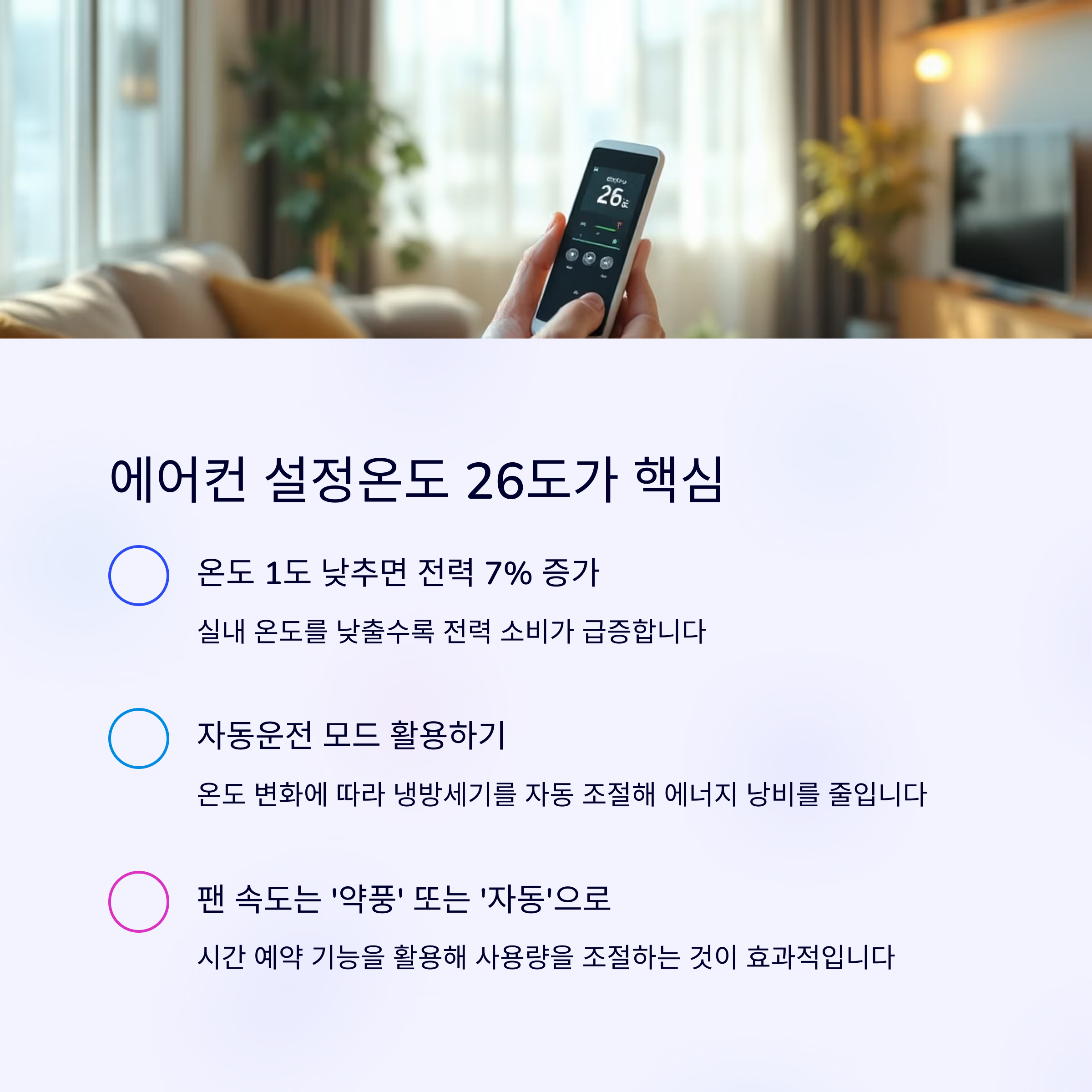 에어컨 설정온도는 26도, 자동운전 모드 활용이 핵심입니다