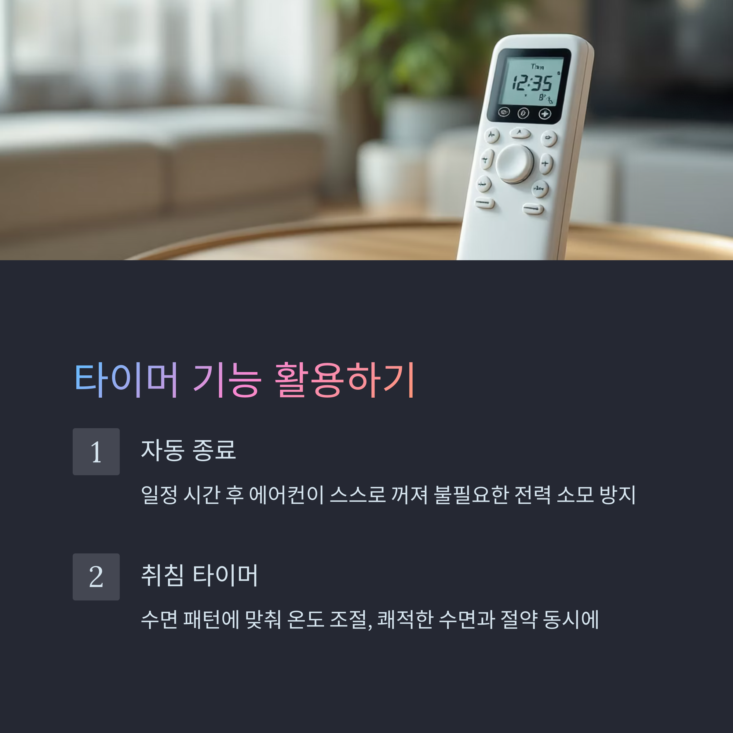 지금 바로 에어컨 리모컨을 들어서, 타이머를 설정하고, 절전 모드로 바꿔보세요.