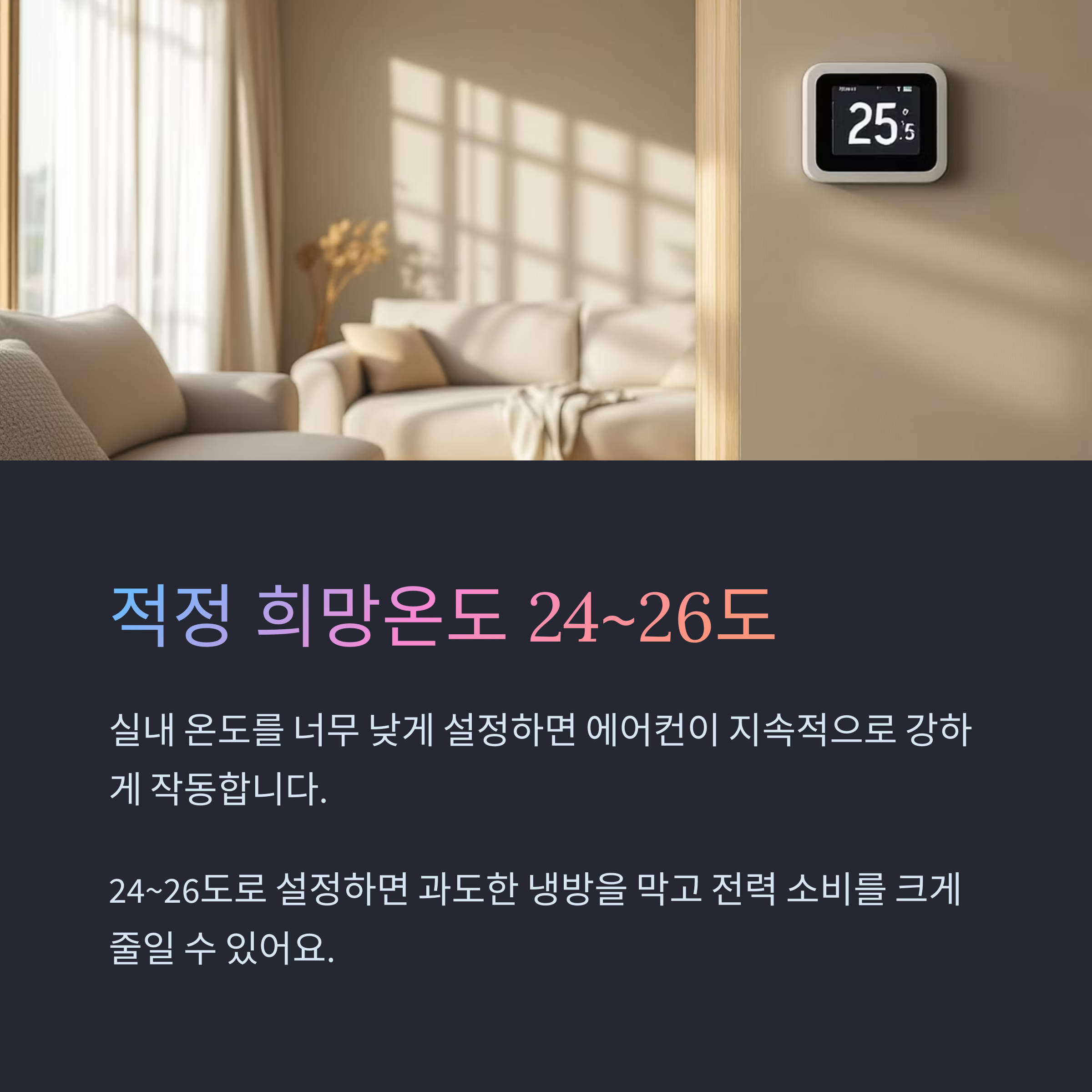희망온도를 24~26도로 설정해두면 과도한 냉방을 막고,