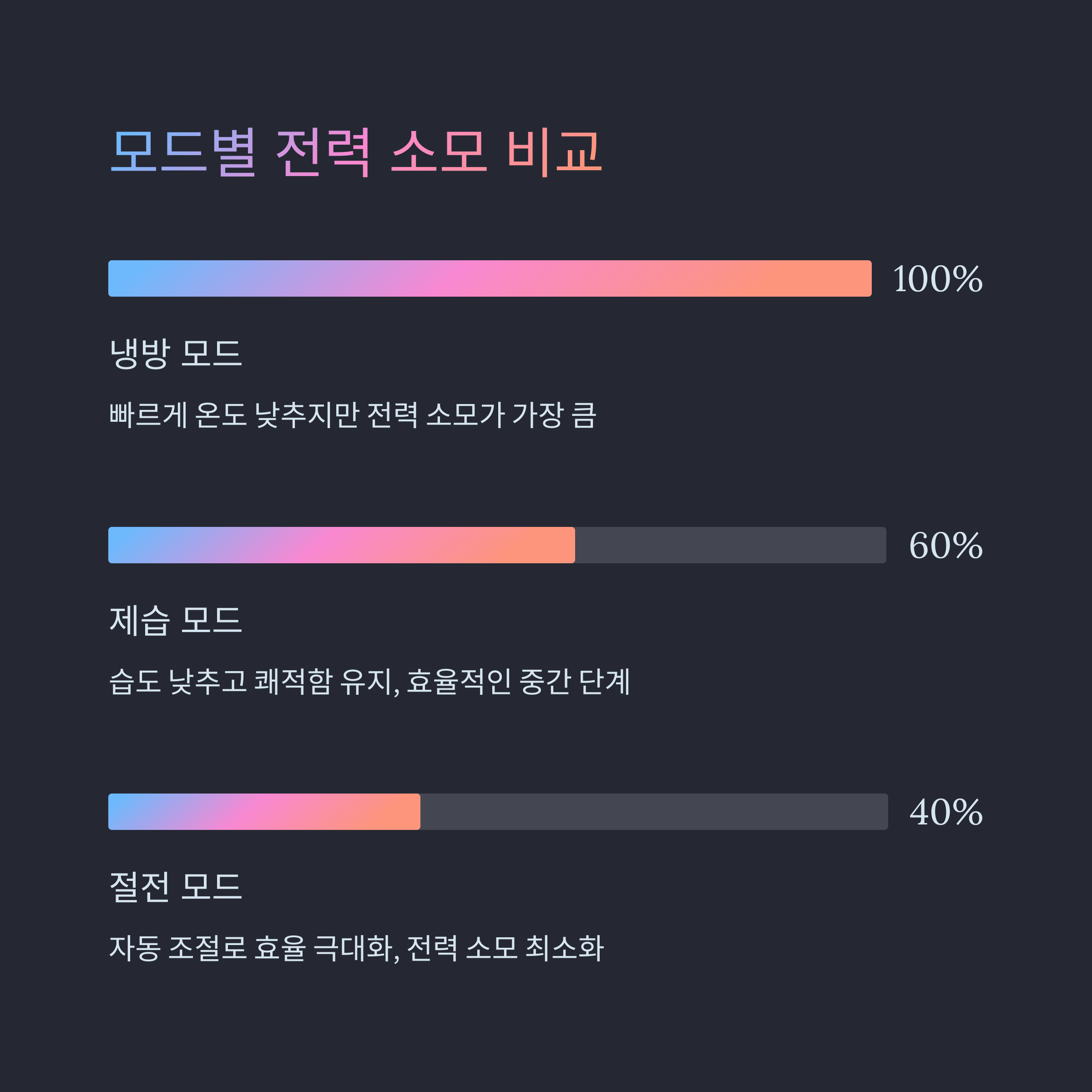 전력 소모 비교표: 냉방 vs 제습 vs 절전 모드