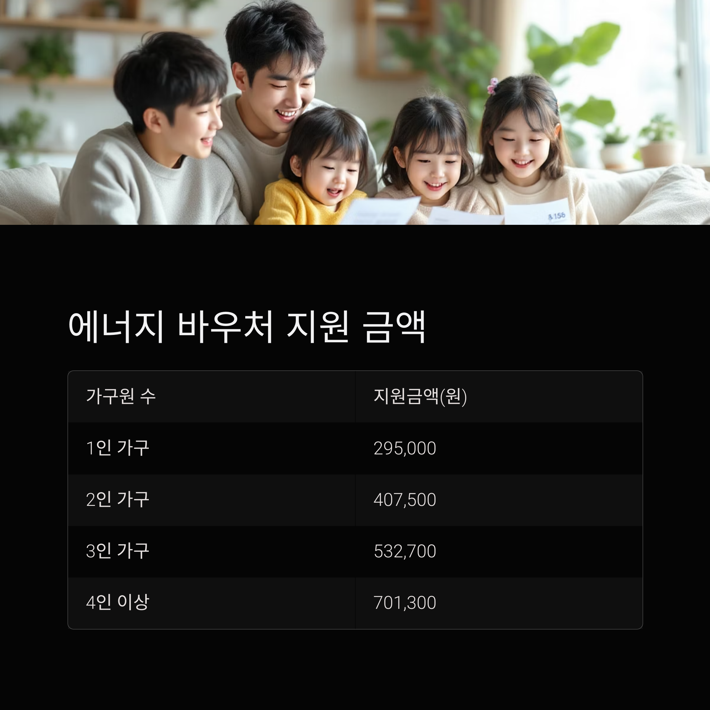 에너지 바우처 금액 요약 표