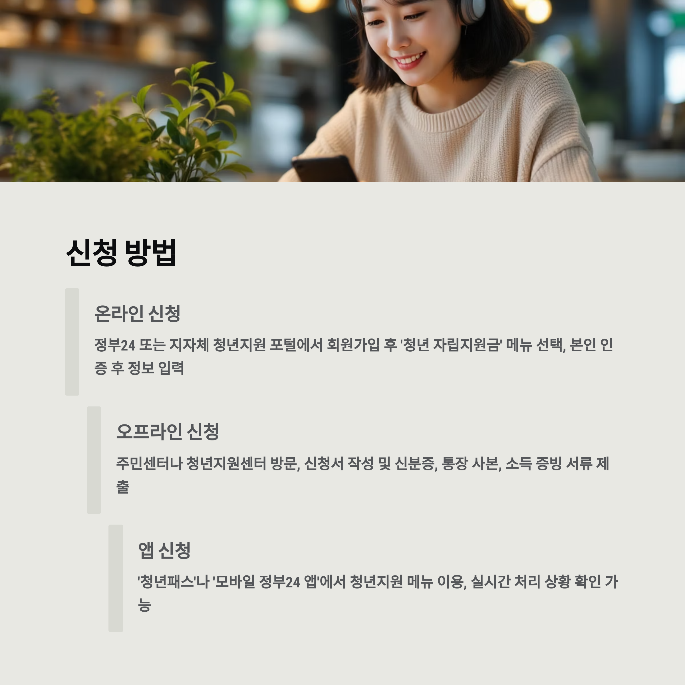 앱을 통한 신청: ‘청년패스’나 ‘모바일 정부24 앱’을 다운로드한 후, 앱 내 청년지원 메뉴에서 신청이 가능합니다. 앱 전용 알림 기능으로 처리 상황을 실시간 확인할 수 있습니다.