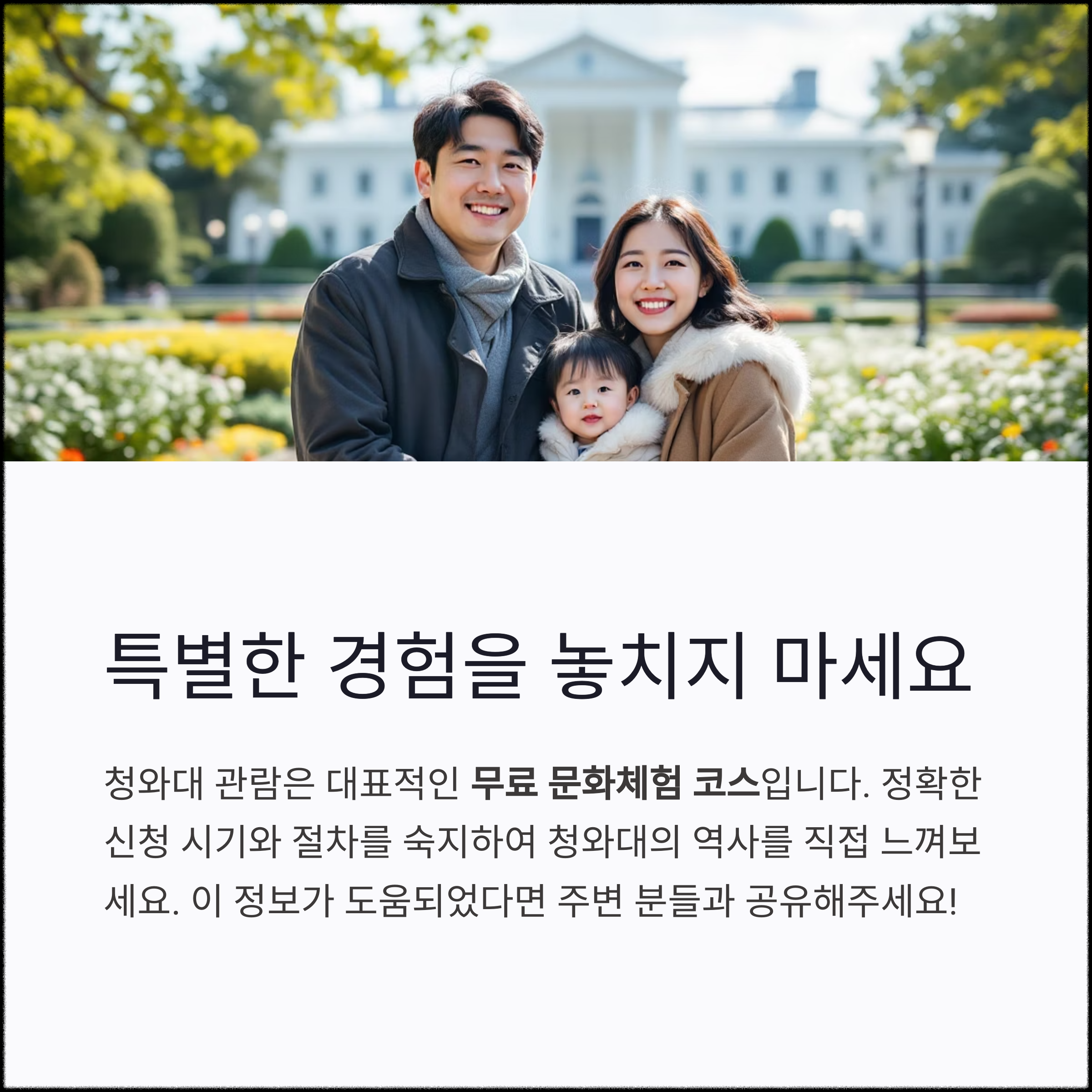 | 신청 사이트 | 청와대 관람 공식 홈페이지 또는 문화유산 방문 캠페인 |