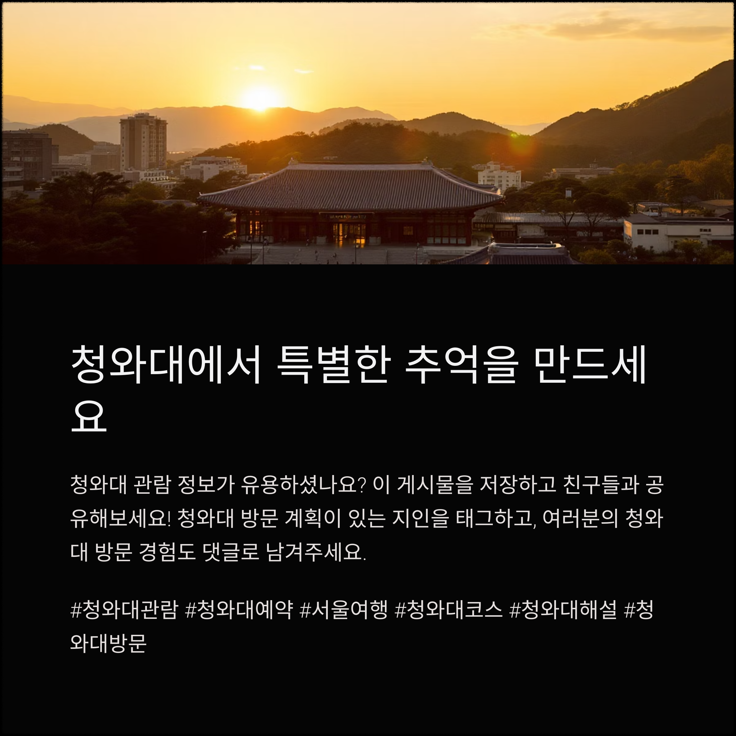 지금 바로 청와대 공식 홈페이지에서 예약하시고, 가족, 친구와 함께 특별한 추억을 만들어보세요.