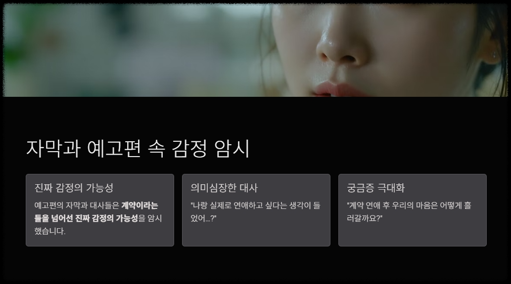 이런 문장들은 계약이라는 틀을 넘어선 진짜 감정의 가능성을 암시하며