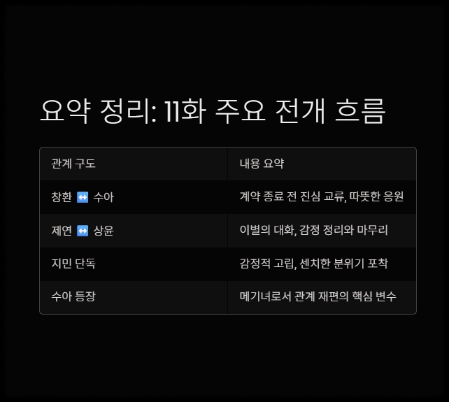 이 표를 통해 11화의 흐름을 구조적으로 정리할 수 있으며