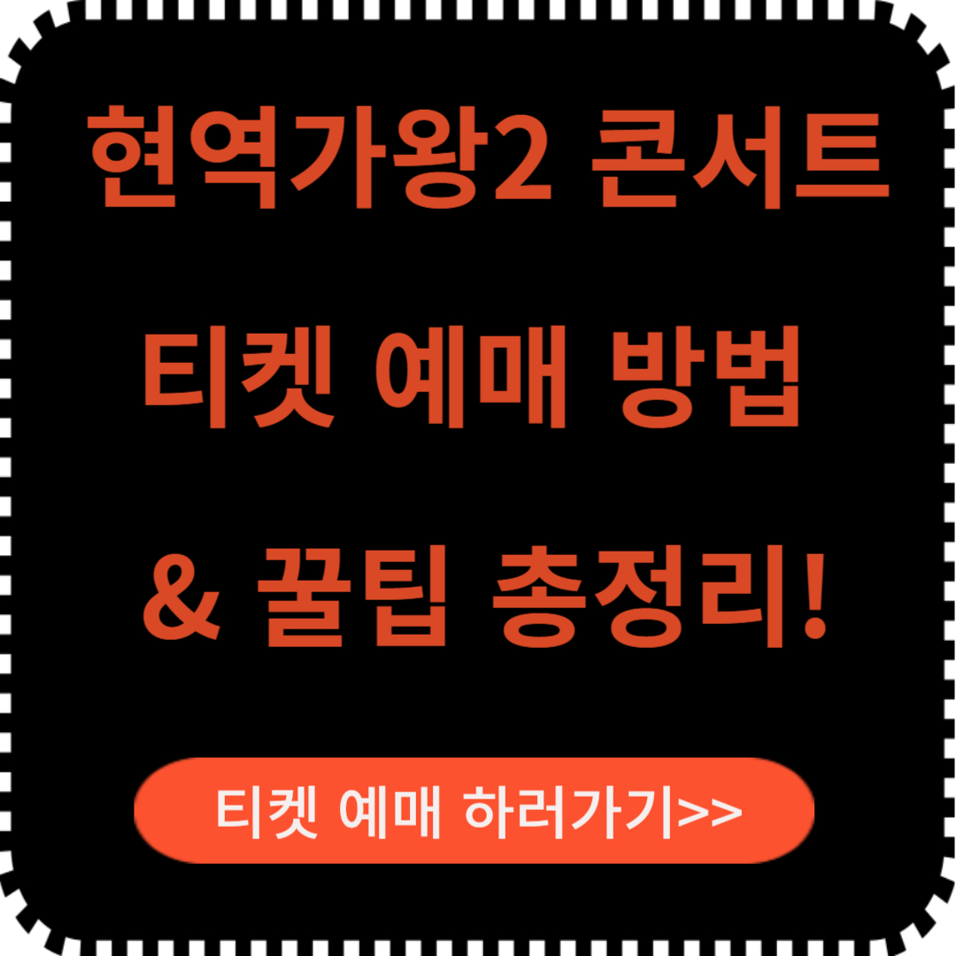 현역가왕2 콘서트 티켓 예매, 성공하는 꿀팁 공개! 예매 사이트(인터파크·멜론·티켓링크)와 일정(서울·부산·대구·광주·대전) 완벽 정리. 출연진(임영웅·장윤정·영탁·송가인) 라인업부터 지역별 티켓팅 경쟁률, 좌석 추천까지 한눈에! 빠르게 예매하기 바랍니다.