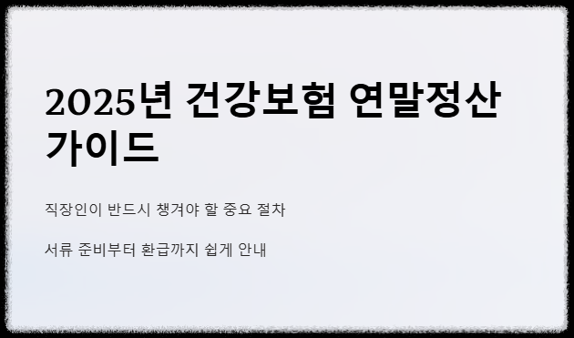 2025년 건강보험 연말정산은 단순히 서류를 제출하는 절차가 아니라, 정확한 납부와 공제 확인을 통해 불필요한 지출을 줄일 수 있는 기회입니다. 미리미리 필요한 서류를 준비하고, 회사 및 공단 시스템을 통해 차질 없이 정산을 완료하는 것이 가장 중요합니다.