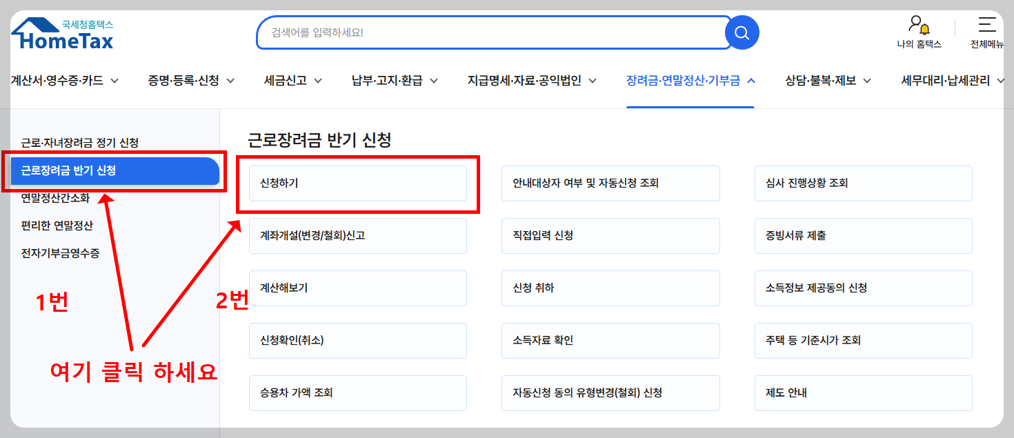 - ‘근로·자녀장려금 신청’ 메뉴 클릭
