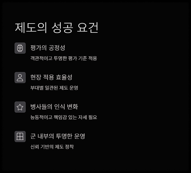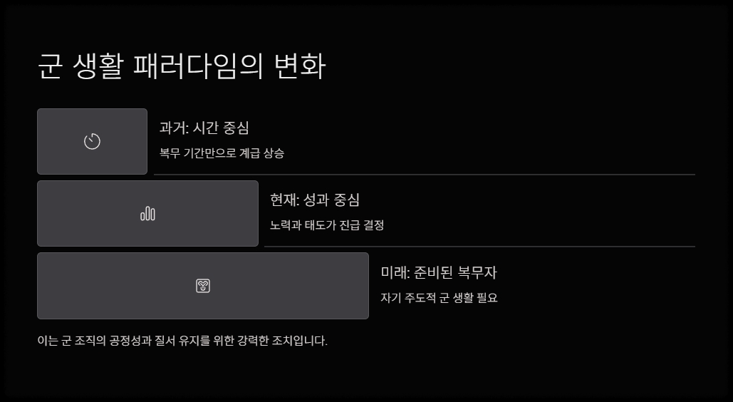 이 변화는 병사들의 책임감을 높이고, 병영 내 질서와 공정성 강화를 목표로 도입된 제도입니다