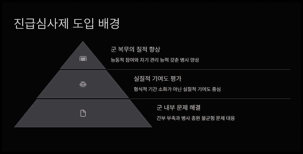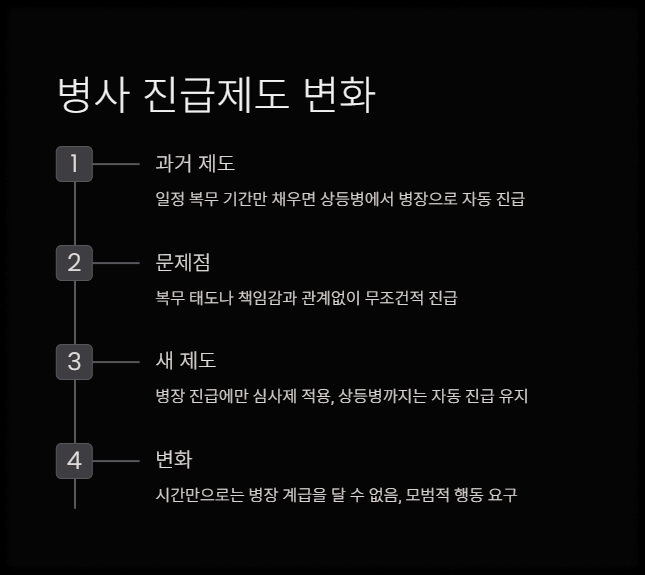 이번 병장 진급 심사제 도입은 단지 평가 방식 변경 차원이 아닙니다