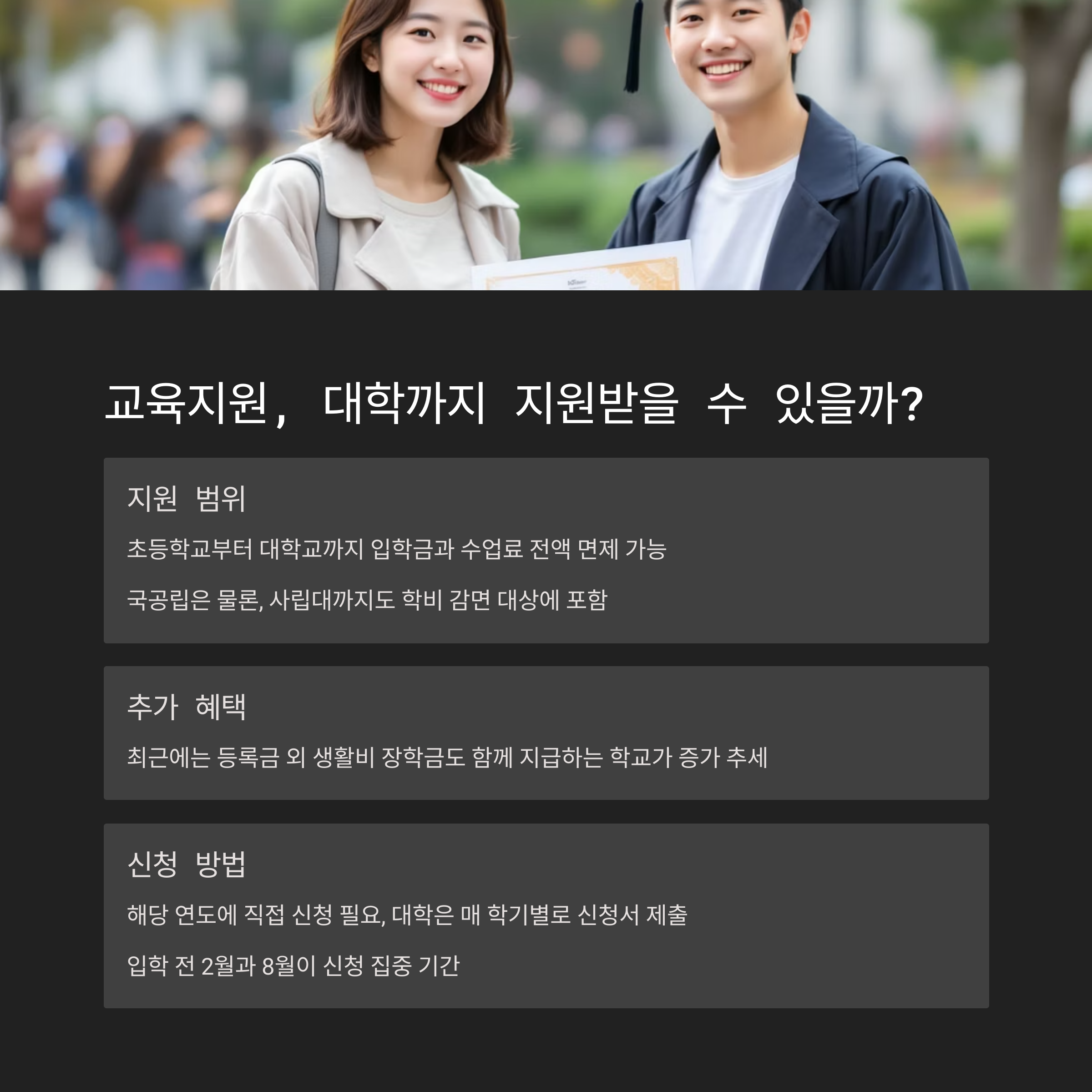 교육지원, 대학까지 지원받을 수 있을까?