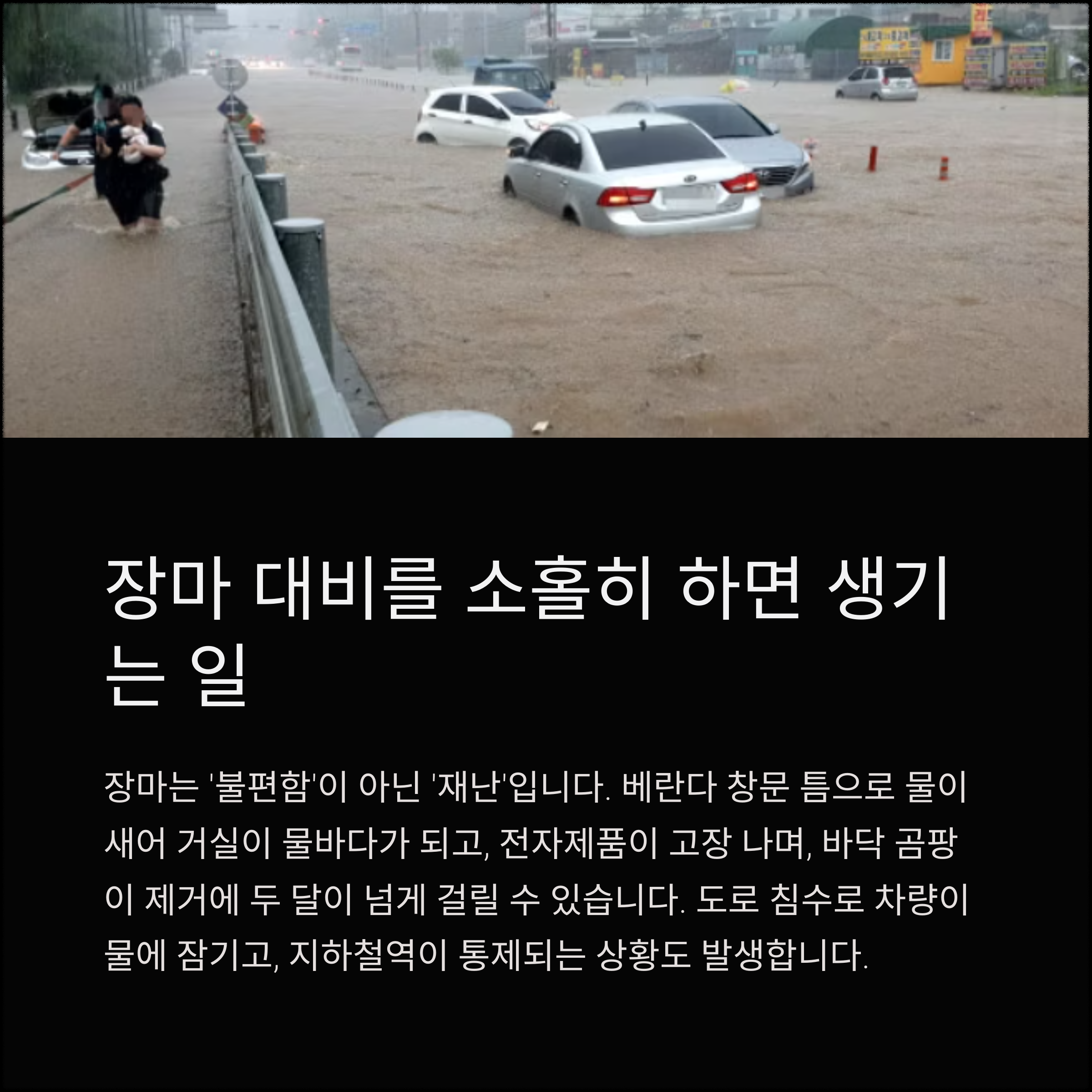 이런 경험을 하면서 느낀 건, 장마는 ‘불편함’이 아니라 ‘재난’이라는 사실입니다