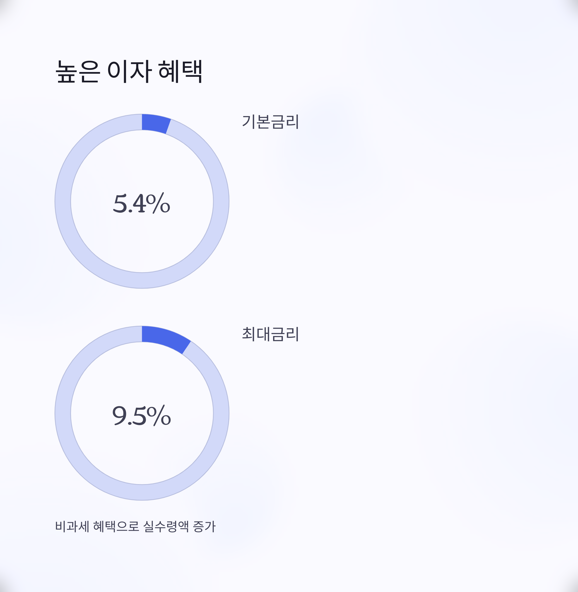 기본금리는 시중 은행 상품 대비 낮지 않으며, 우대금리를 포함하면 최대 9.5% 수준까지 가능합니다. 특히 비과세 혜택까지 적용되기 때문에, 세금으로 빠져나가는 부분이 없어 실수령액이 늘어납니다.