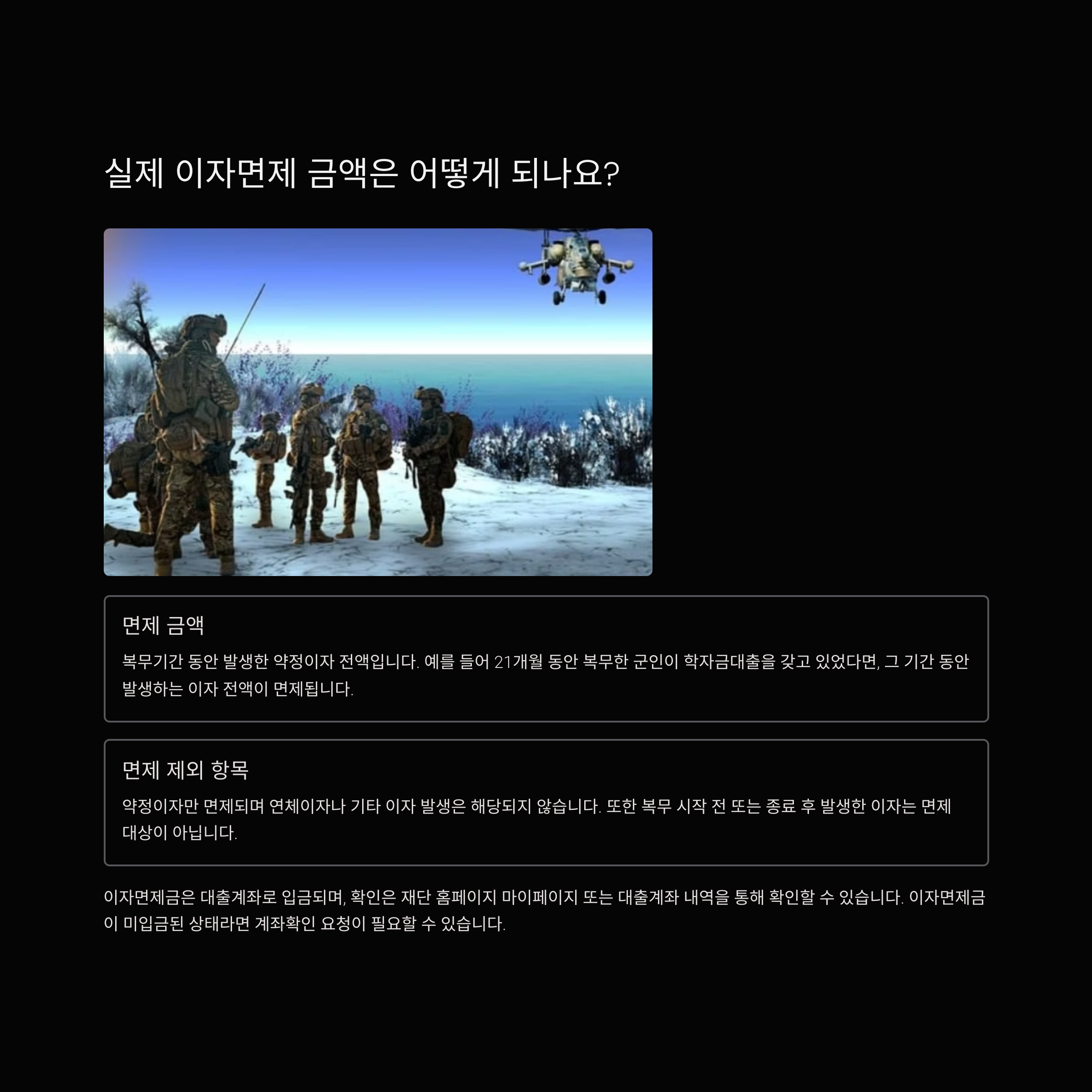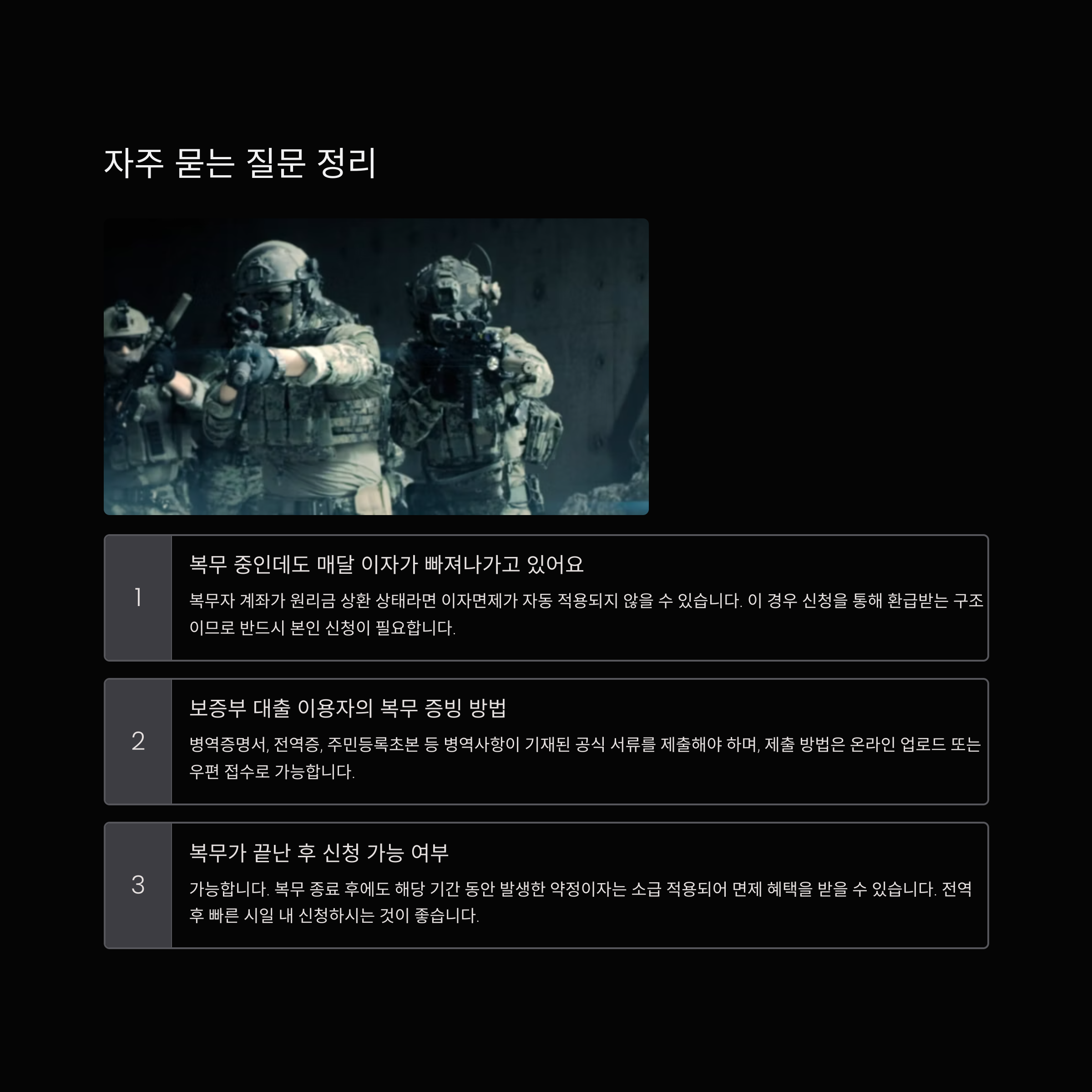 질문 1. 복무 중인데도 매달 이자가 빠져나가고 있어요. 이자면제 안 되는 건가요?