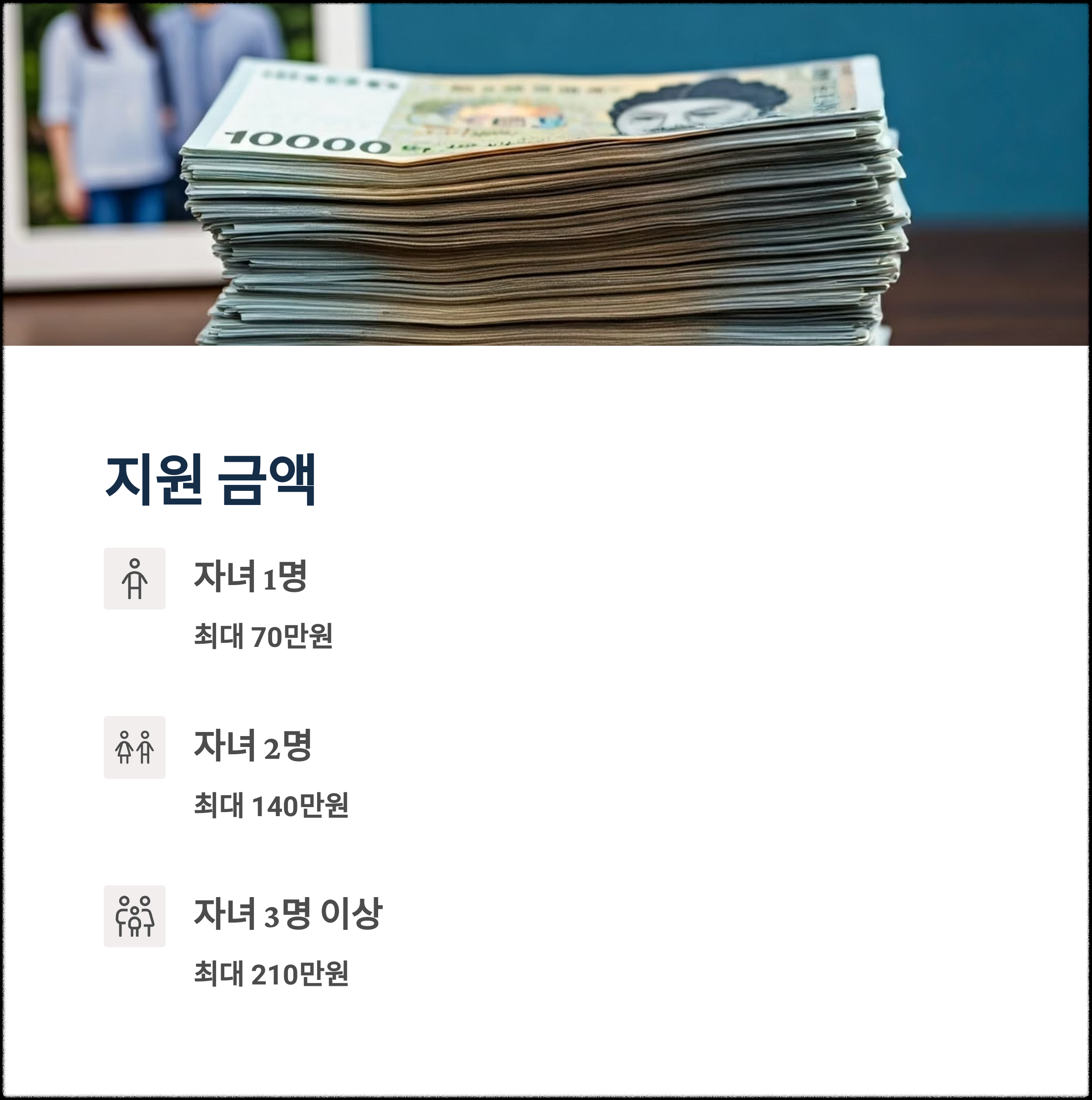 얼마나 받을 수 있나? 자녀 1인당 최대 70만 원