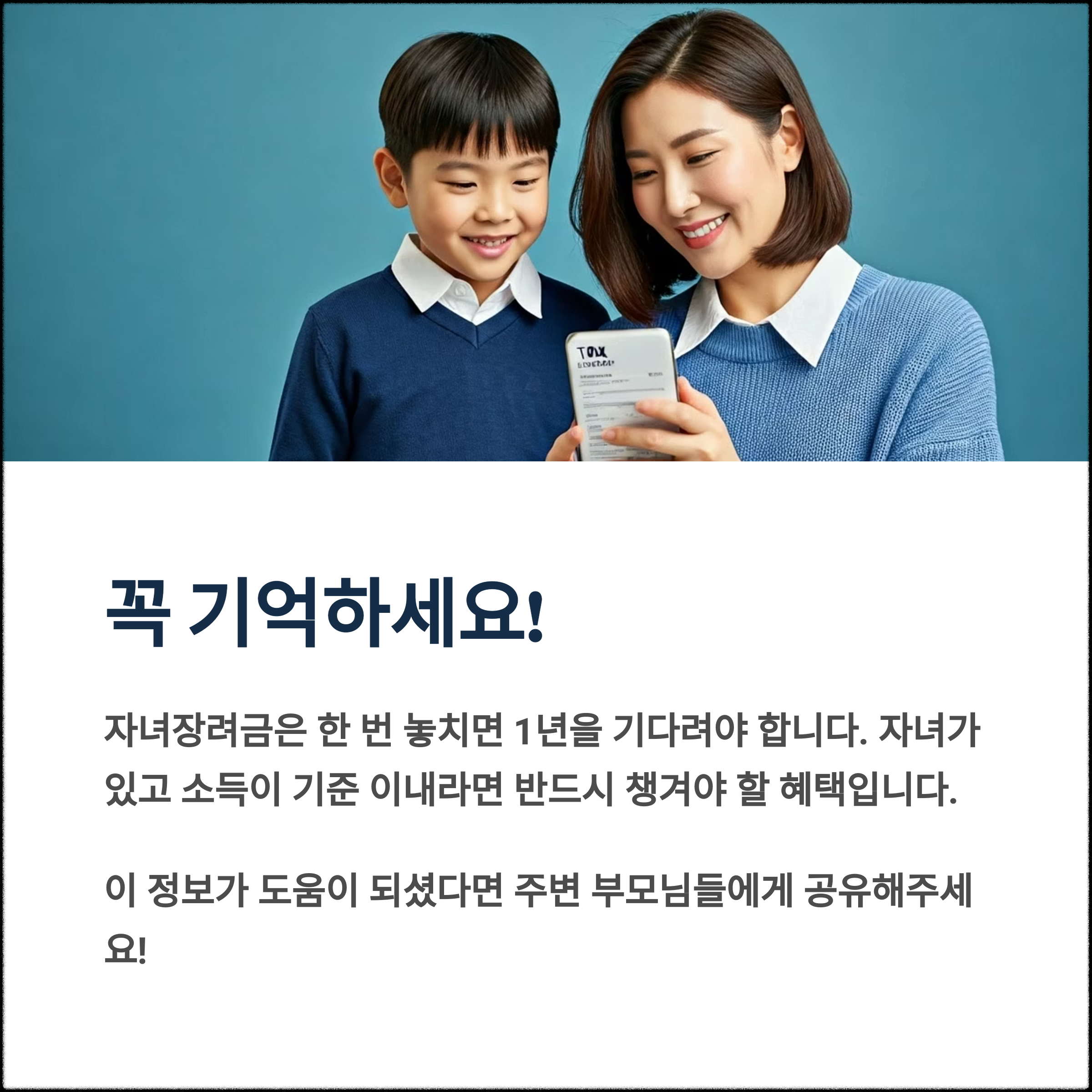 자녀장려금은 한 번 놓치면 1년을 기다려야 합니다.