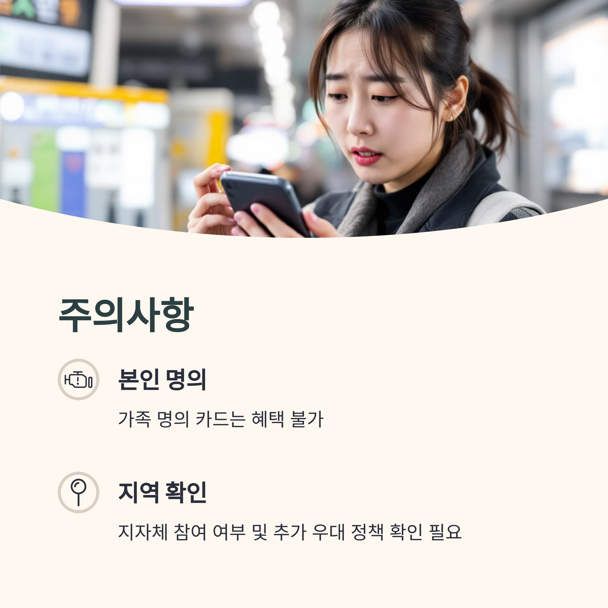 - 가족 명의 교통카드로는 혜택을 받을 수 없습니다
