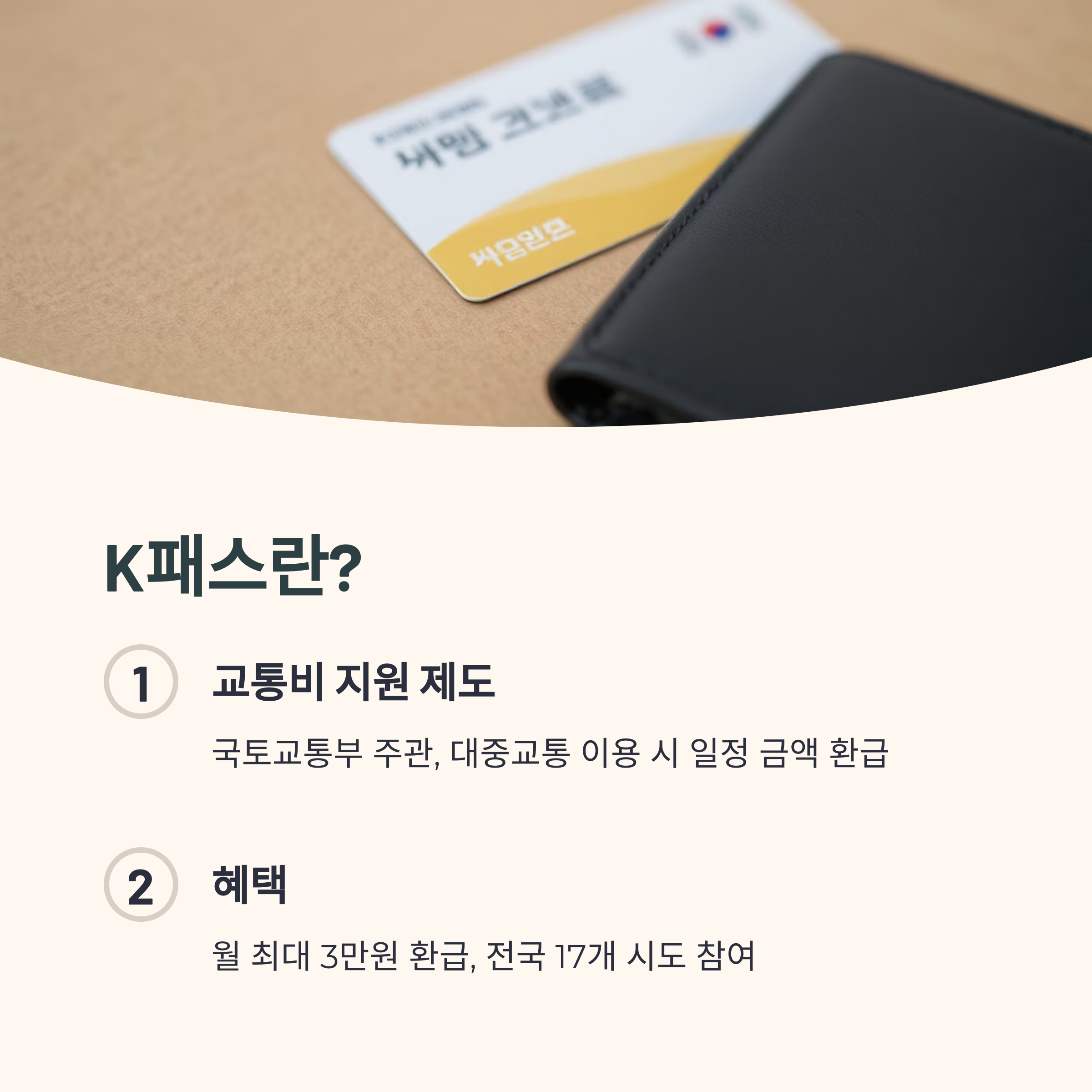 K패스는 국토교통부에서 추진하는 교통비 지원 제도로, 교통비의 일정 금액을 환급해주는 시스템입니다. 대중교통을 자주 이용하는 국민에게 실질적인 경제적 혜택을 주기 위해 만들어졌으며, 신청 대상자의 교통비 일부를 매월 현금으로 돌려받을 수 있습니다.