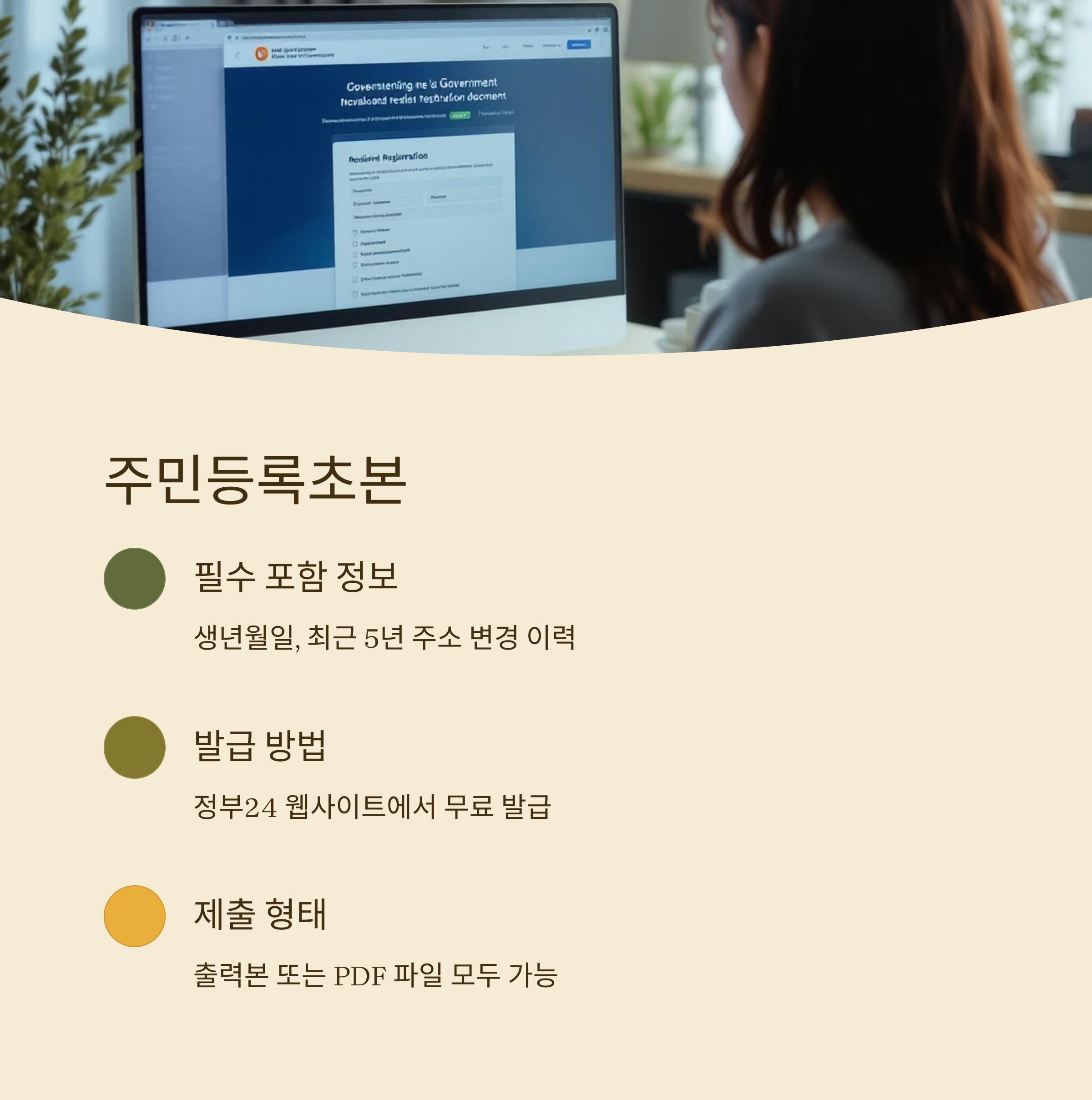 주민등록초본은 신청자의 연령과 거주지를 확인하는 가장 기본적인 서류입니다. 특히 생년월일과 최근 5년 내 주소 변경 이력이 포함되어야 하므로 초본 발급 시 해당 항목을 반드시 선택해 출력해야 합니다.