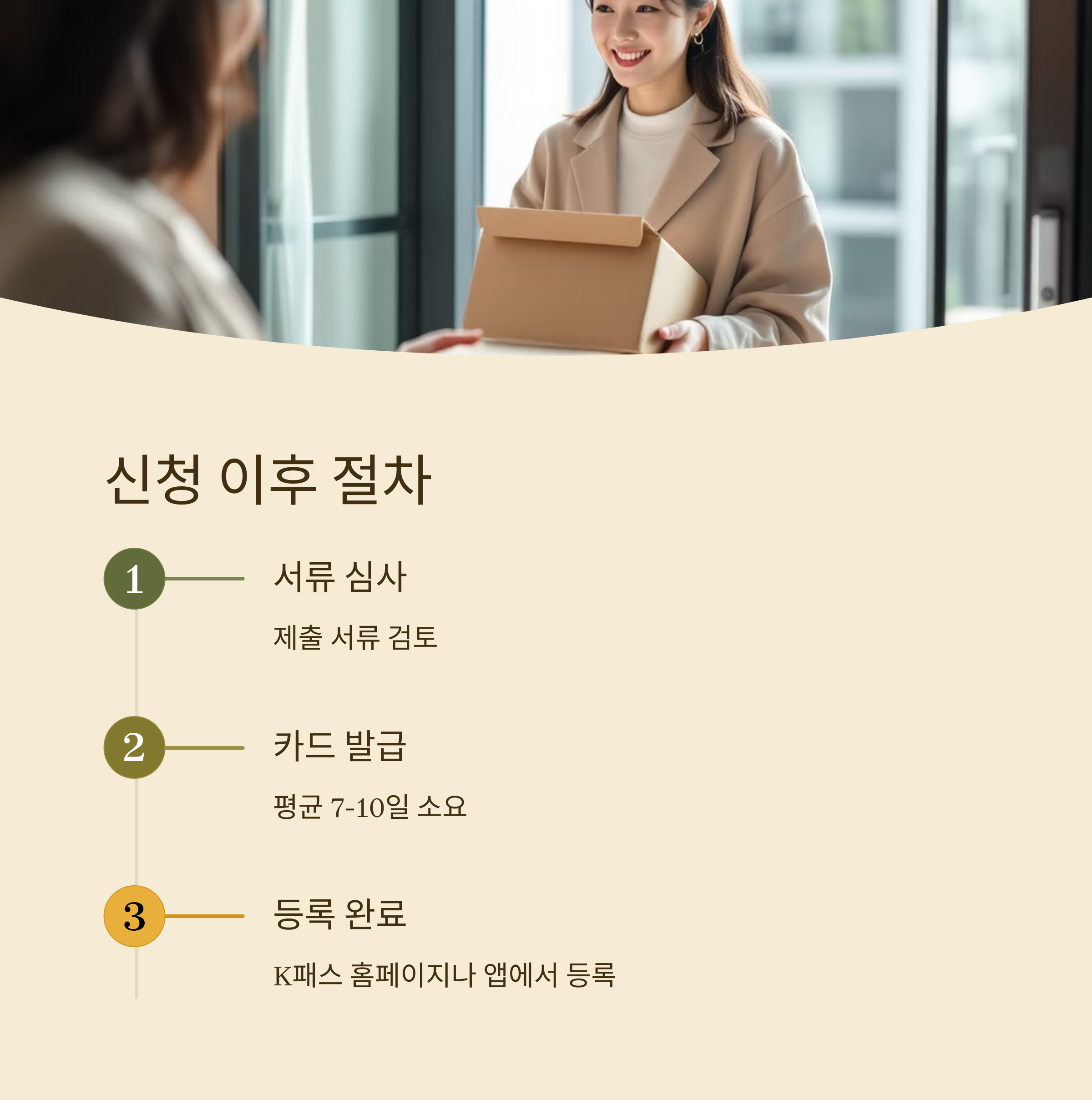 신청이 완료되면 서류 심사 후 카드 발급이 이루어집니다. 평균적으로 7~10일 소요되며, 카드 수령 후 K패스 홈페이지나 카드사 앱에서 등록 절차를 완료해야 실제 혜택이 적용됩니다.