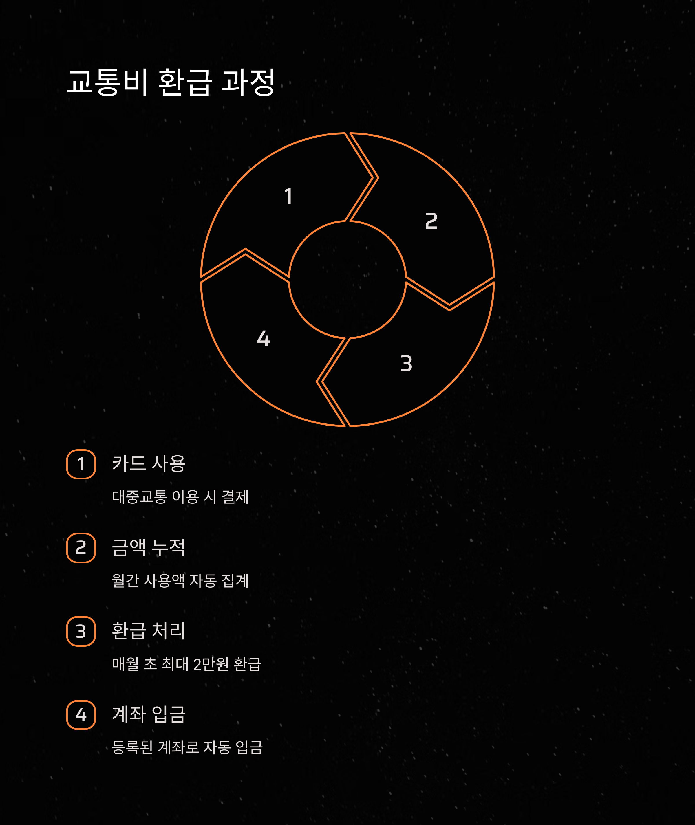 자동으로 결제 금액이 누적되고, 매월 초 최대 2만 원까지 환급됩니다.